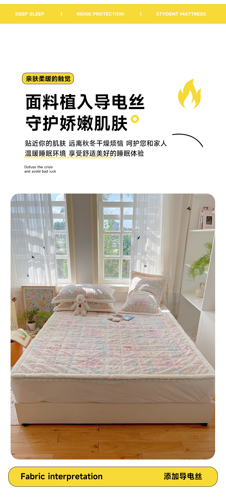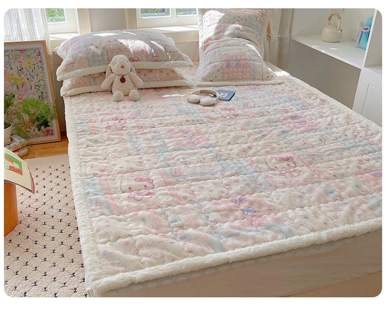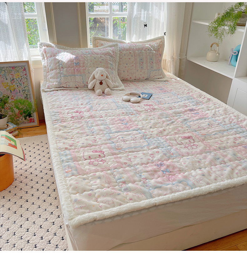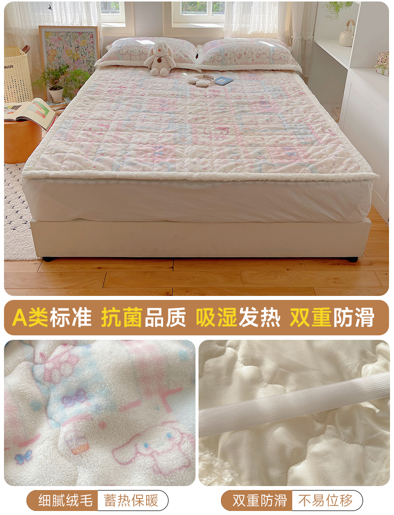 商品名称:红嘴企鹅 2025新款高克重牛奶绒印花床护垫床褥 少女猫咪