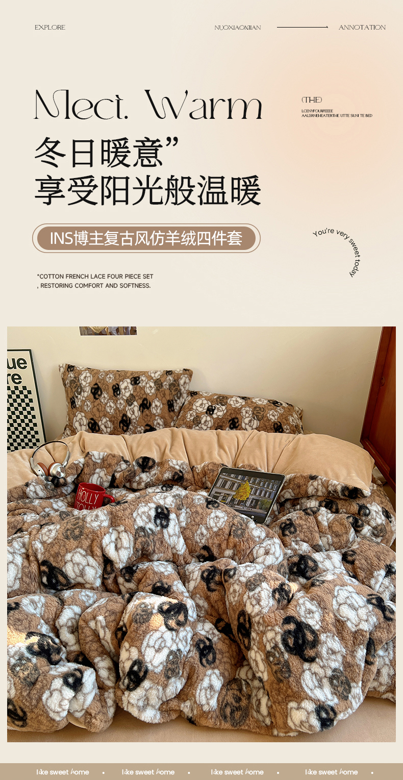 当前位置: 91家纺网 > 商品网购 > 床品套件 > 四件套 > 其它四件套 > 六巷胡同 2025新款INS博主复古风山茶花A类仿羊绒四件套 仿羊绒-山茶琥珀