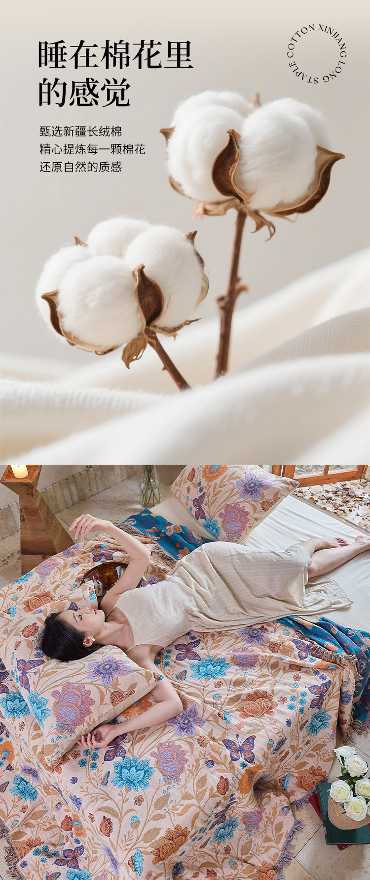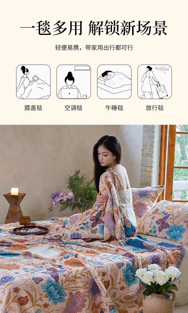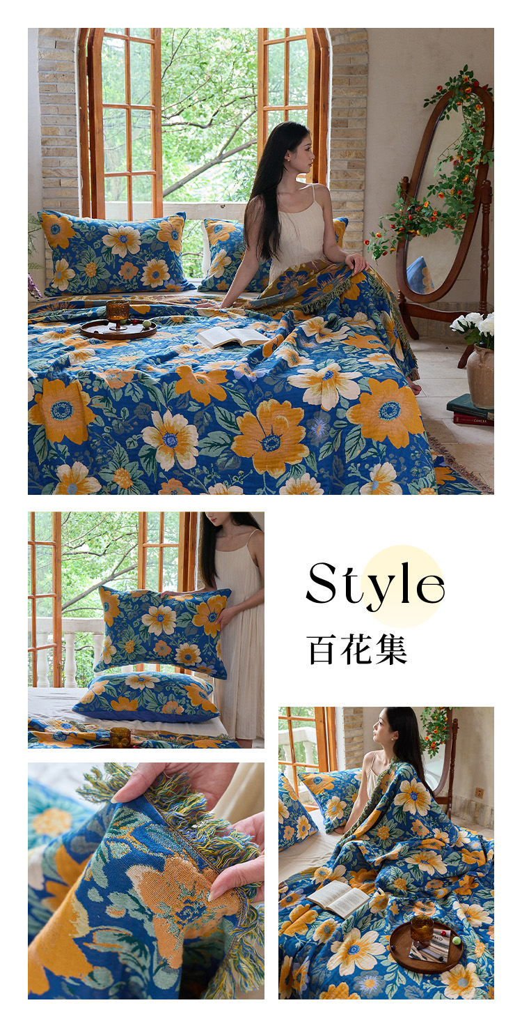 (总)沐瑟家纺 2025新款亲肤柔软全棉纱布中国风盖毯毯子,百花集,翠影鸟-蓝色,花想容,花鸟韵,蝶语-绿,蝶语-淡粉,花蝶-米,比翼鸟,墨葵,绮梦花