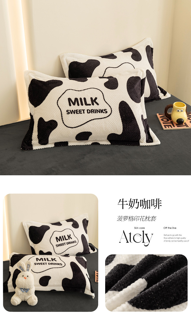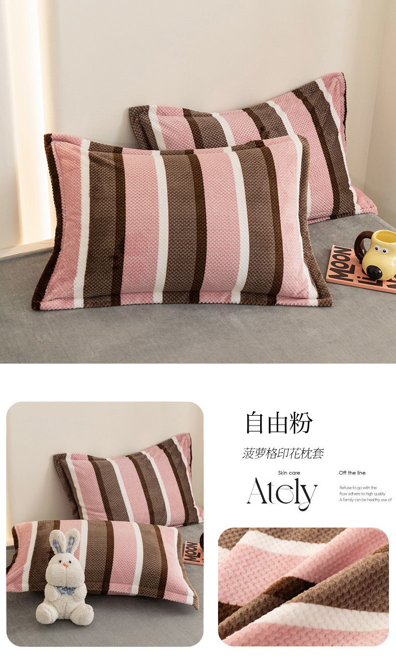 倾慕家纺 2026新款立体菠萝格印花单枕套 七彩小兔