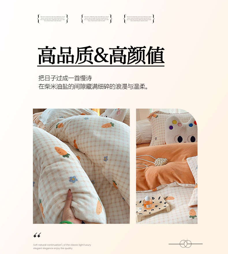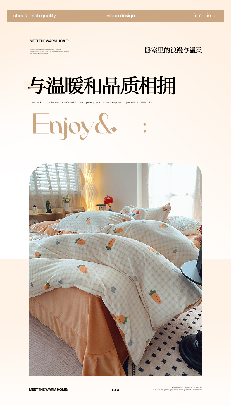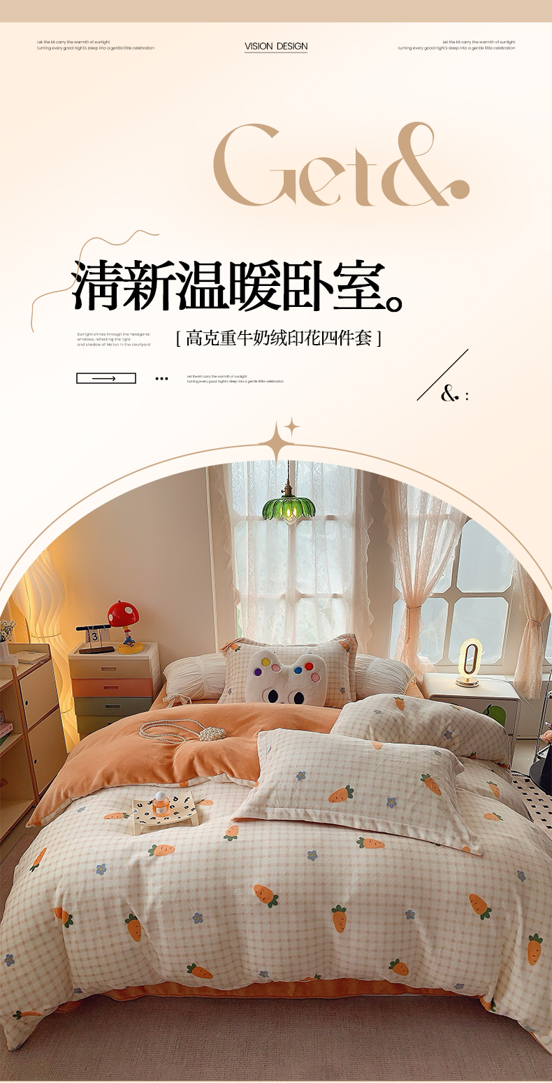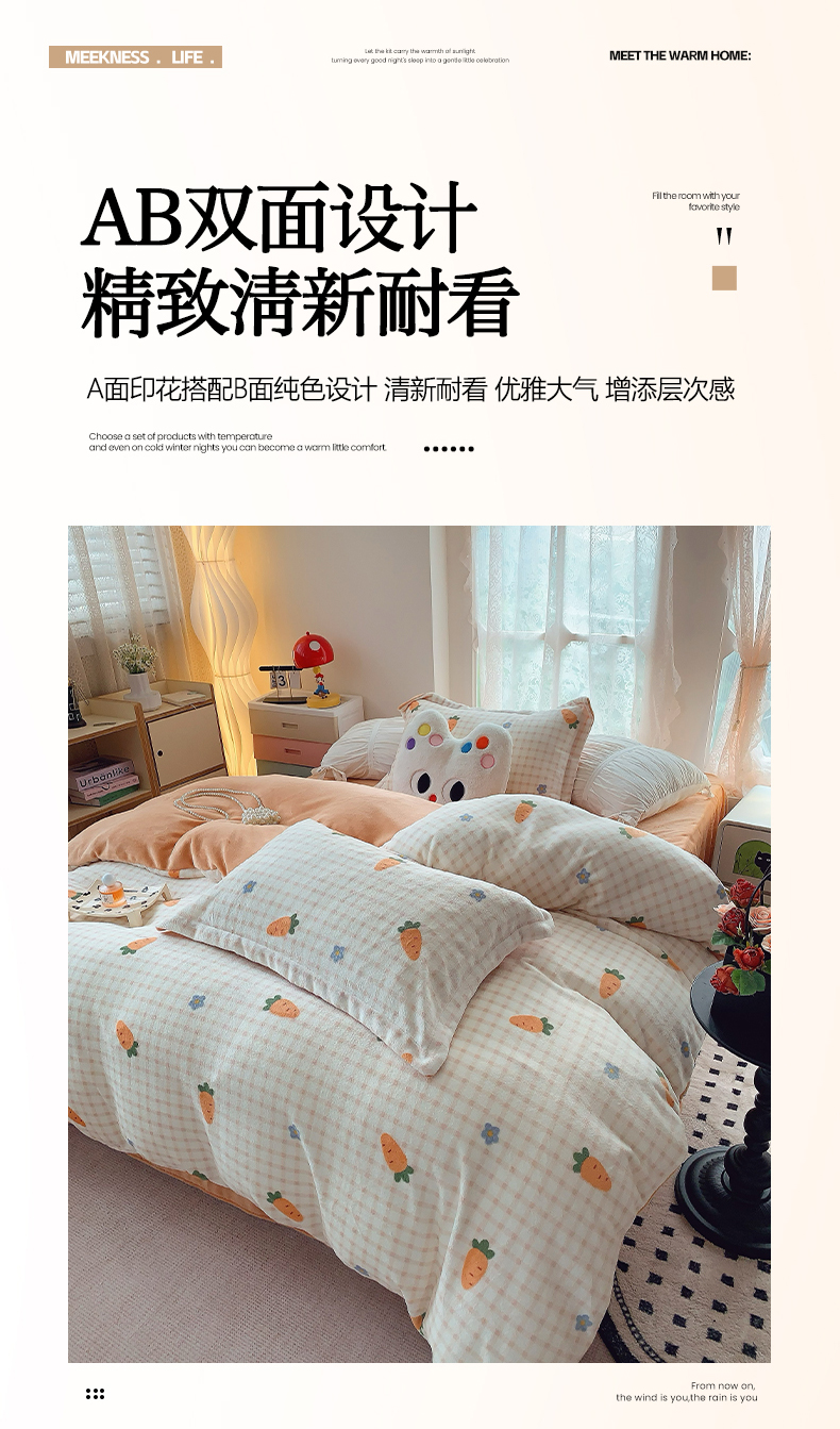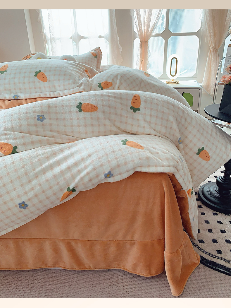 奈萝家纺 2025新款加厚小清新印花牛奶绒三件套四件套 甜心萝卜