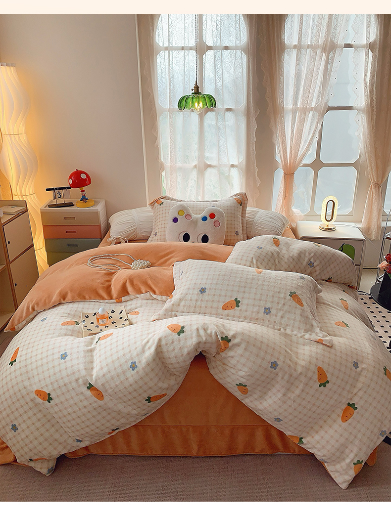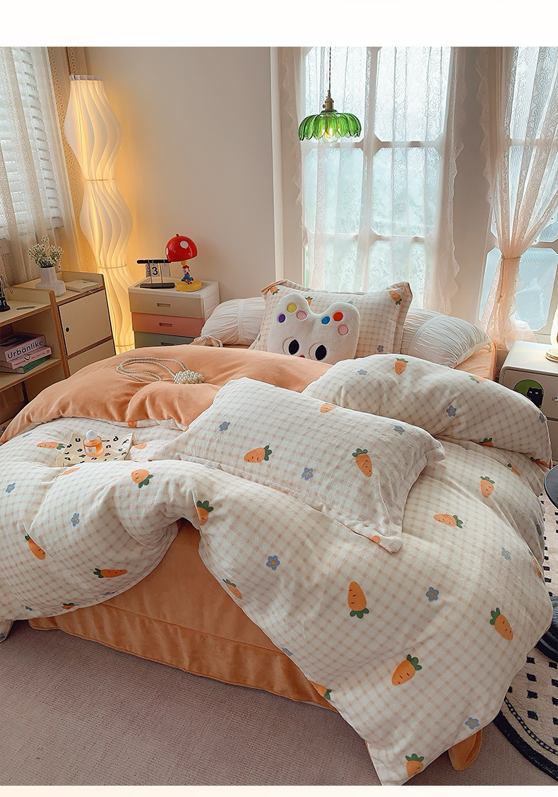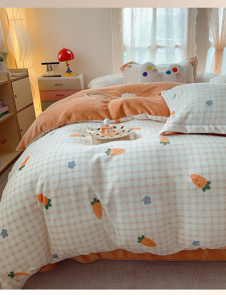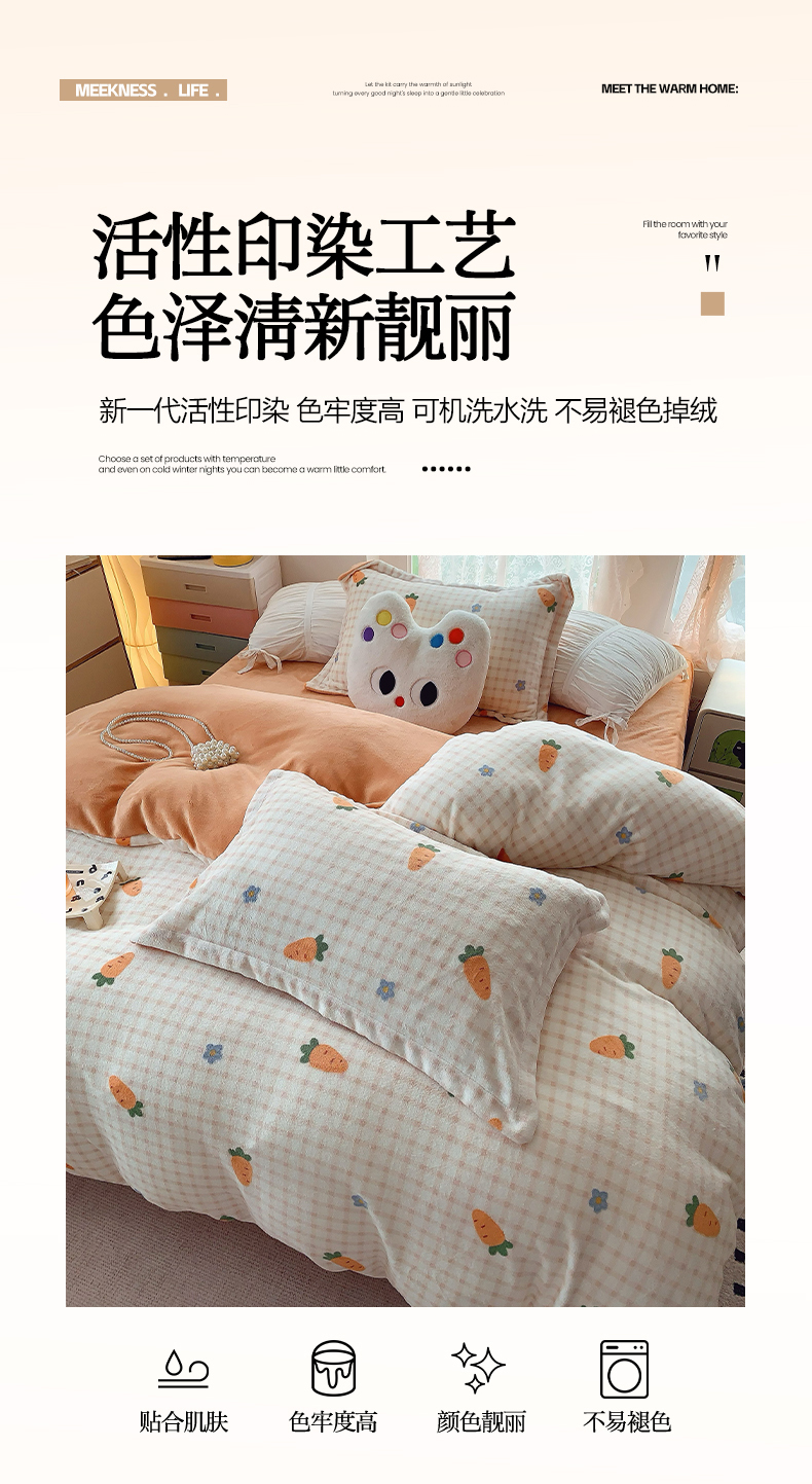商品名称:奈萝家纺 2025新款加厚小清新印花牛奶绒三件套四件套 甜心萝卜