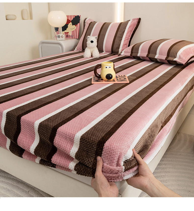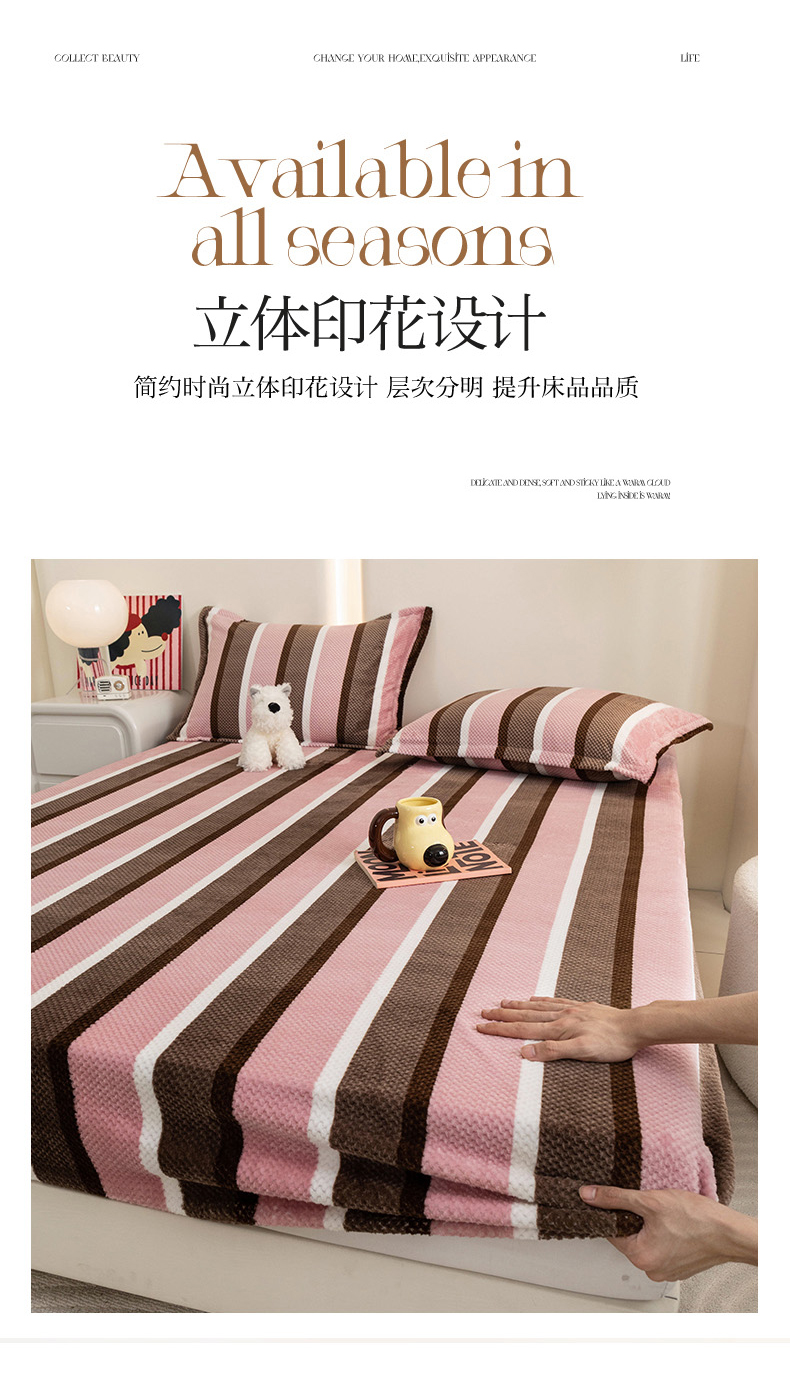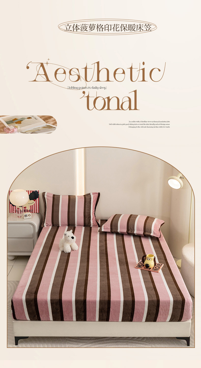 倾慕家纺 2026新款立体菠萝格印花保暖床笠 自由粉