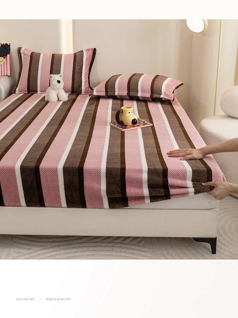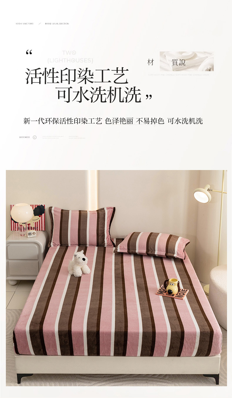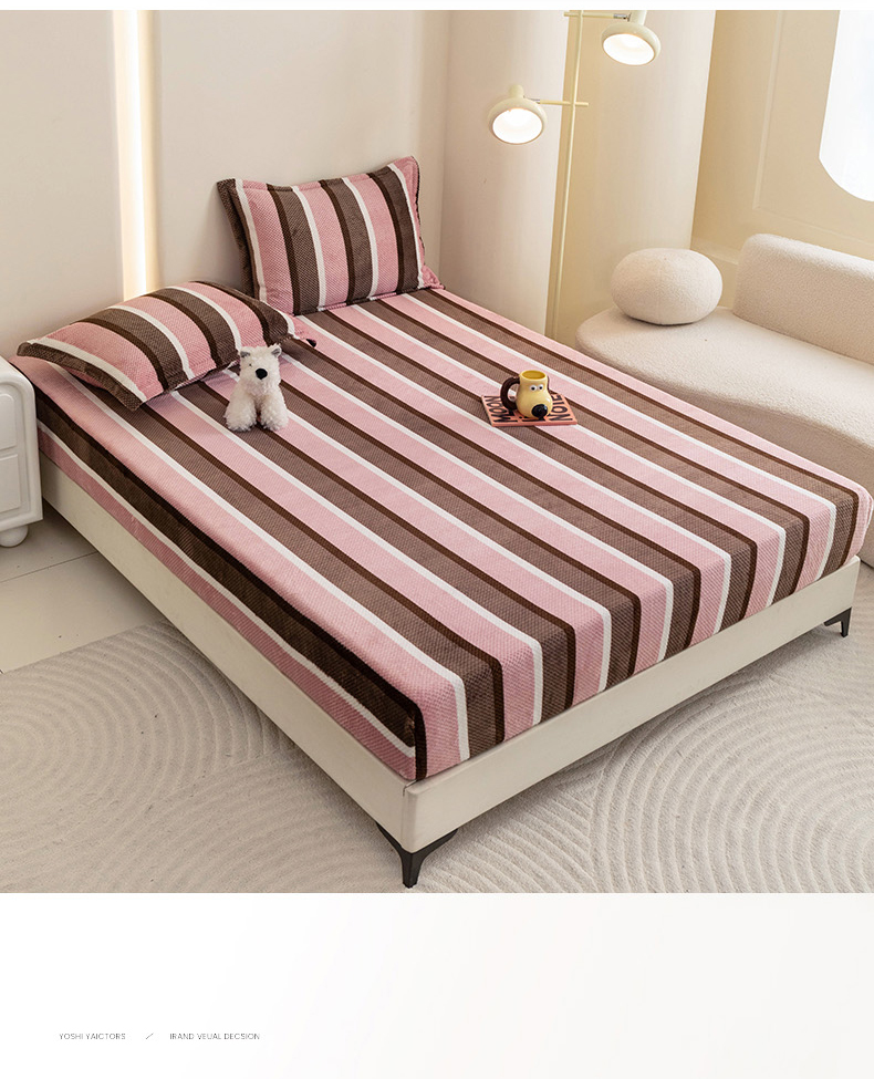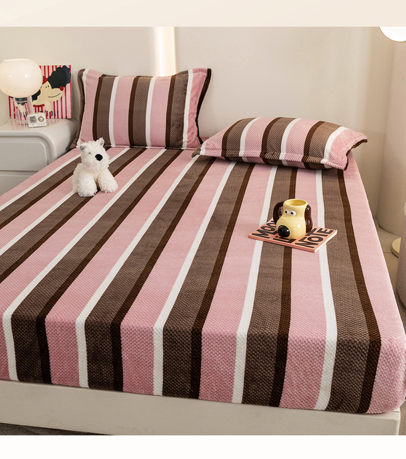 倾慕家纺 2026新款立体菠萝格印花保暖床笠 自由粉