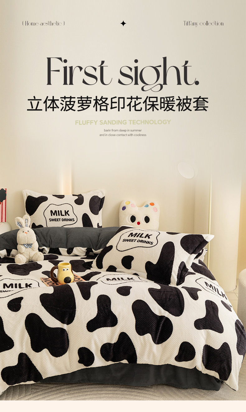 倾慕家纺 2026新款立体菠萝格印花保暖单被套 牛奶咖啡