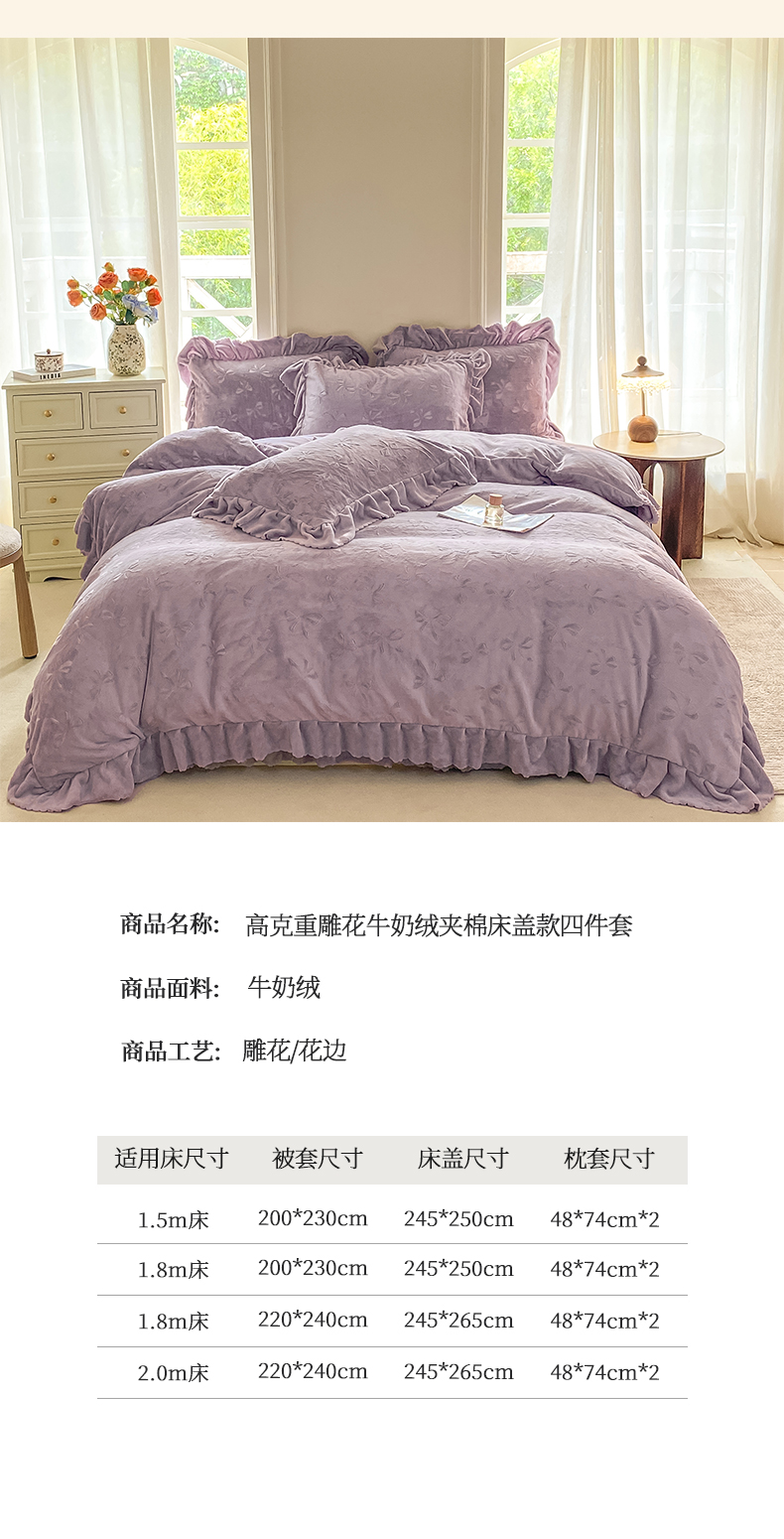 商品名称:(总)慕希家纺 2025新款高克重牛奶绒夹棉床盖四件套