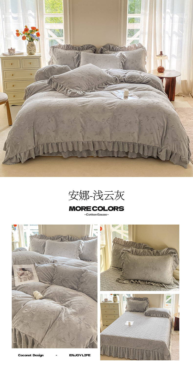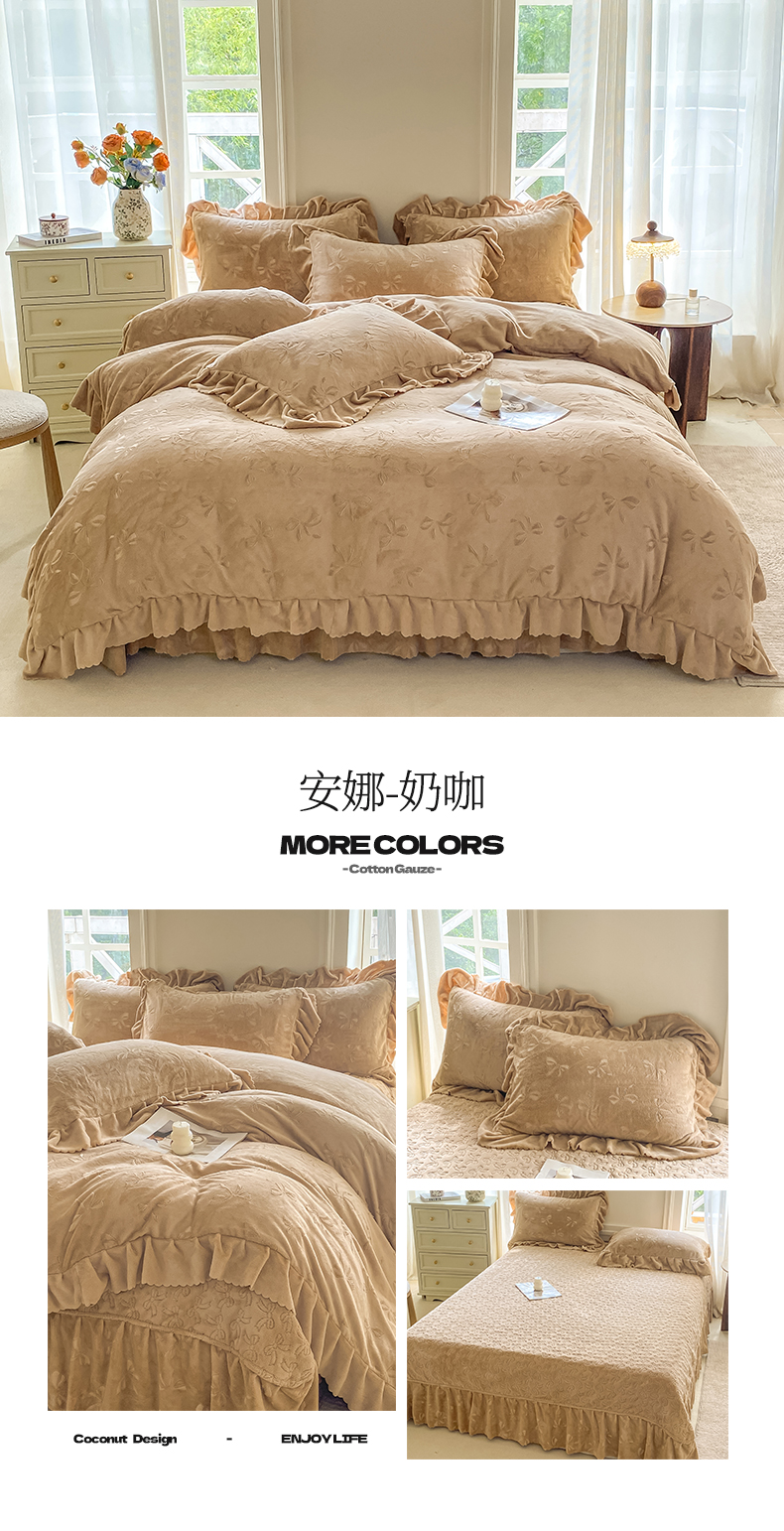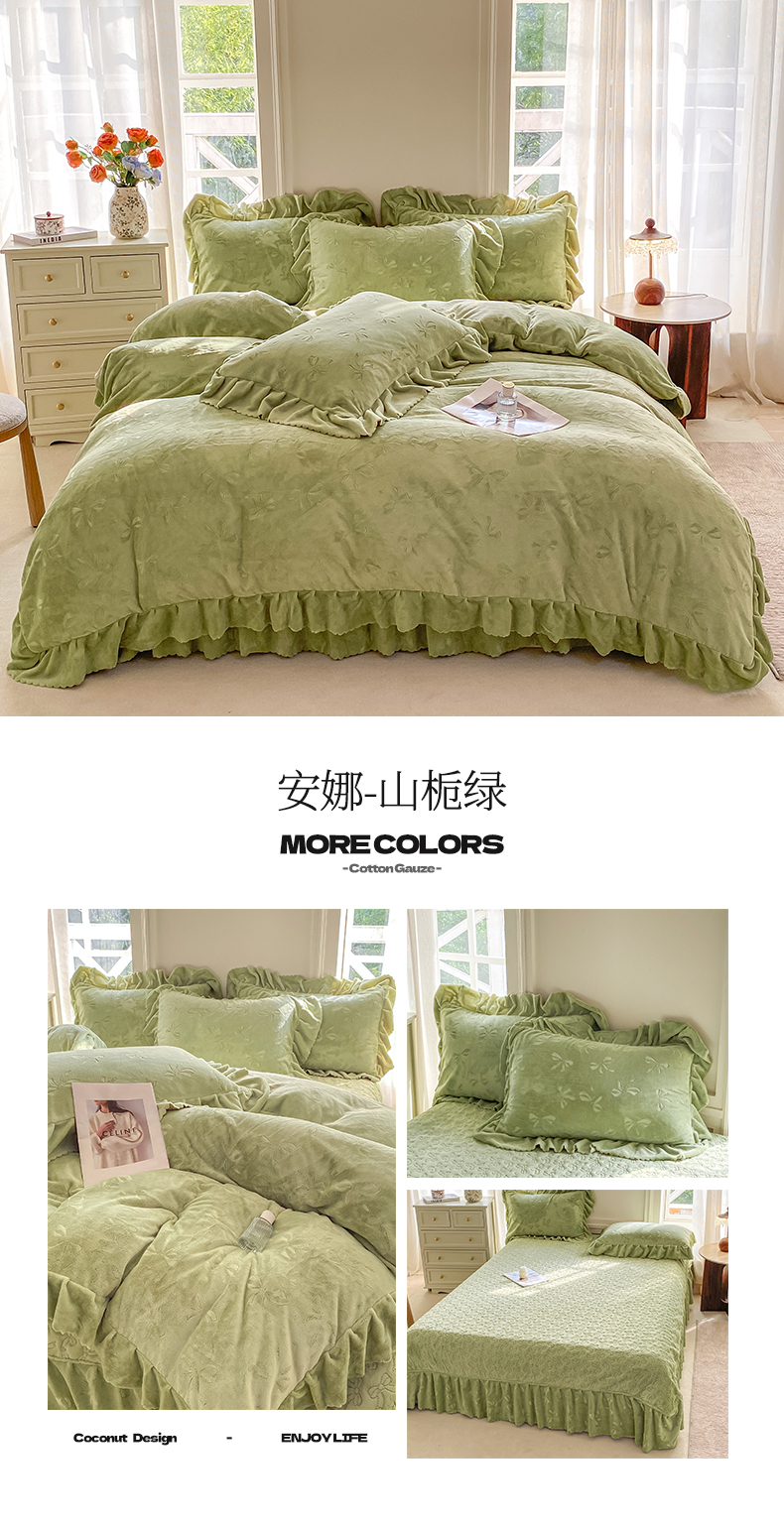 (总)慕希家纺 2025新款高克重牛奶绒花边床盖款四件套-格律时尚,格律时尚-红,格律时尚-灰,格律时尚-咖,格律时尚-蓝,格律时尚-绿