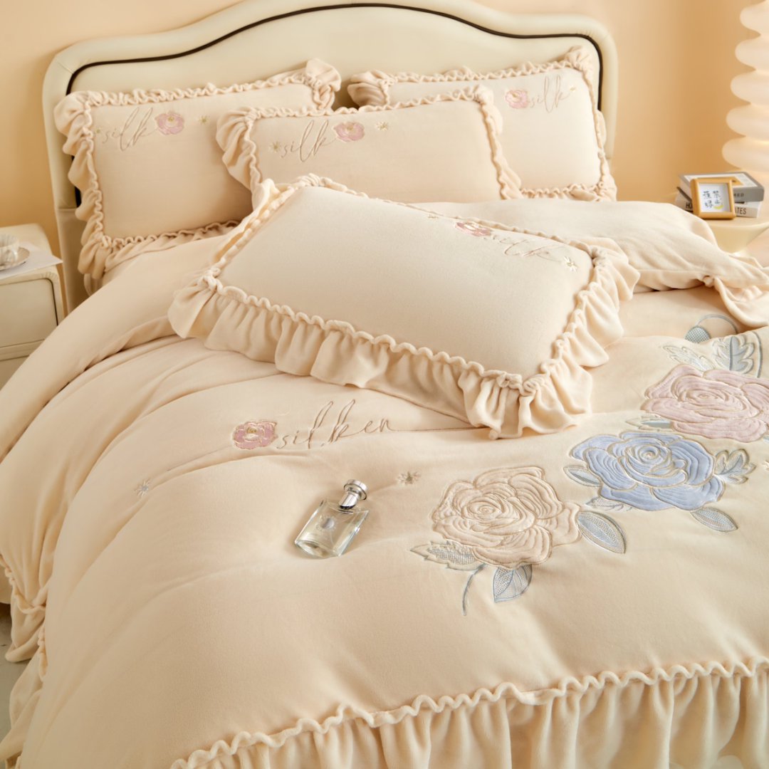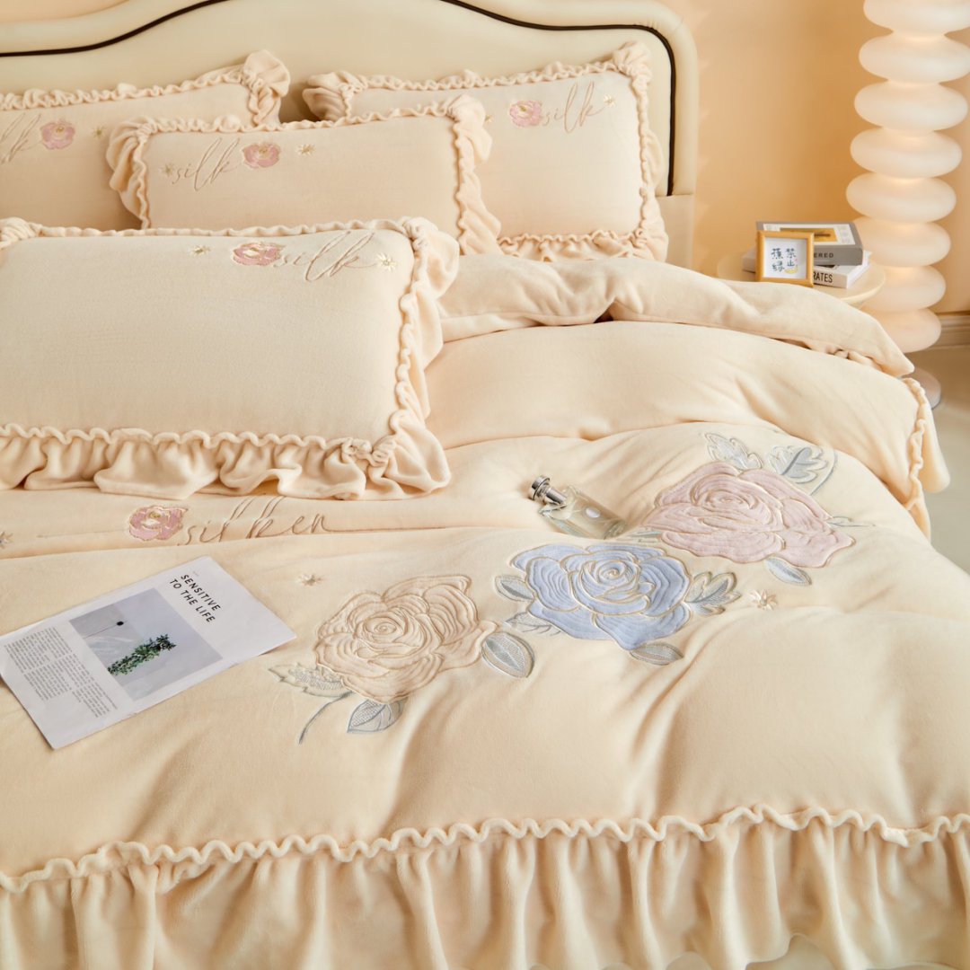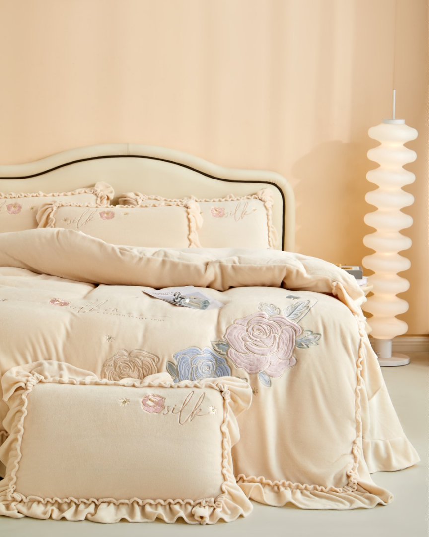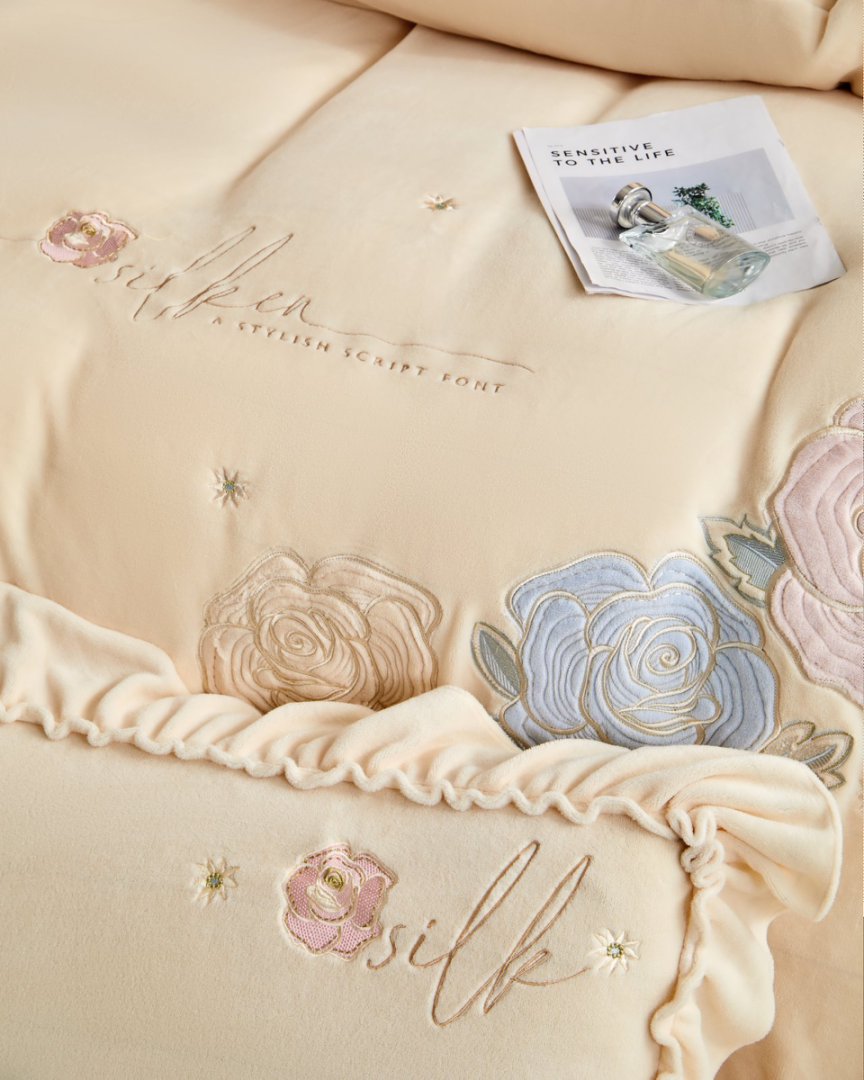 七里香 2025新款牛奶绒刺绣四件套-枝意系列 枝意-米黄