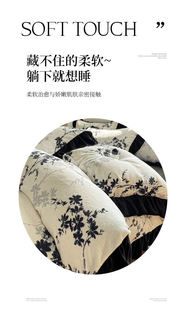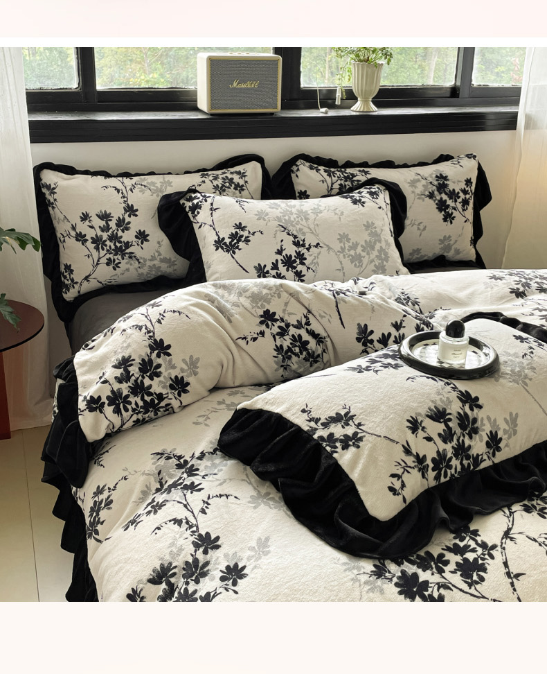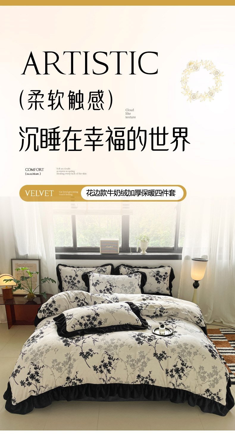当前位置: 91家纺网 > 商品网购 > 床品套件 > 四件套 > 牛奶绒四件套 > 慕澄家纺 2025新款赫本风牛奶绒花边款四件套 花边款-花枝