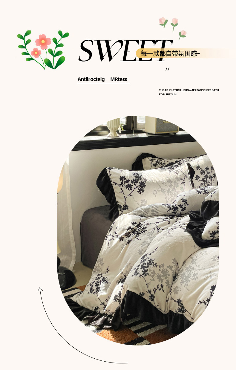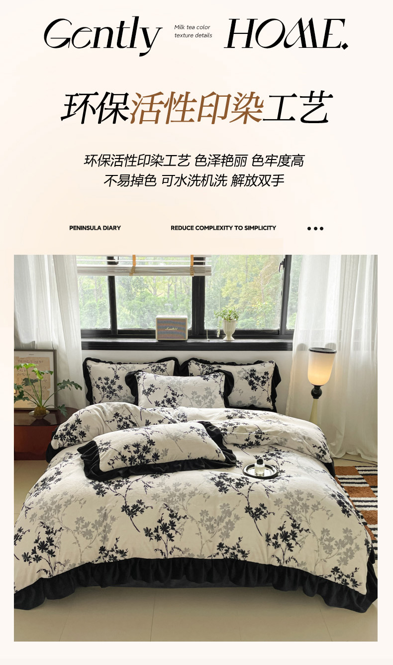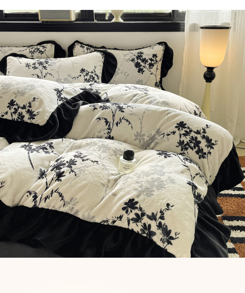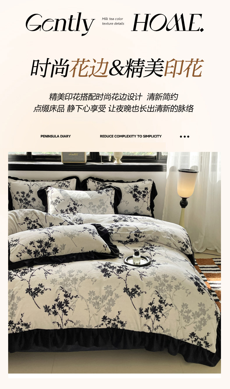 当前位置: 91家纺网 > 商品网购 > 床品套件 > 四件套 > 牛奶绒四件套 > 慕澄家纺 2025新款赫本风牛奶绒花边款四件套 花边款-花枝
