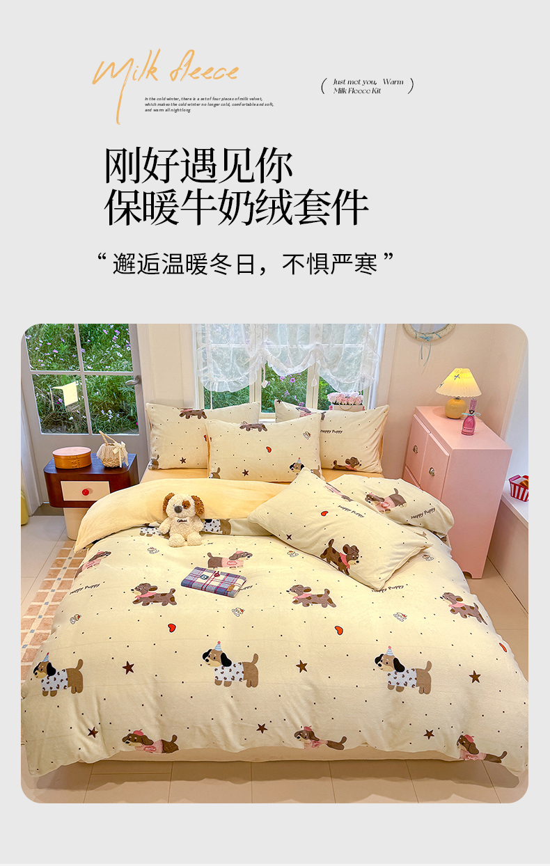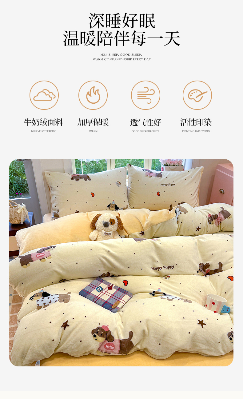 当前位置: 91家纺网 > 商品网购 > 床品套件 > 四件套 > 牛奶绒四件套 > 枋梢家纺 2025新款加厚牛奶绒保暖四件套 腊肠狗