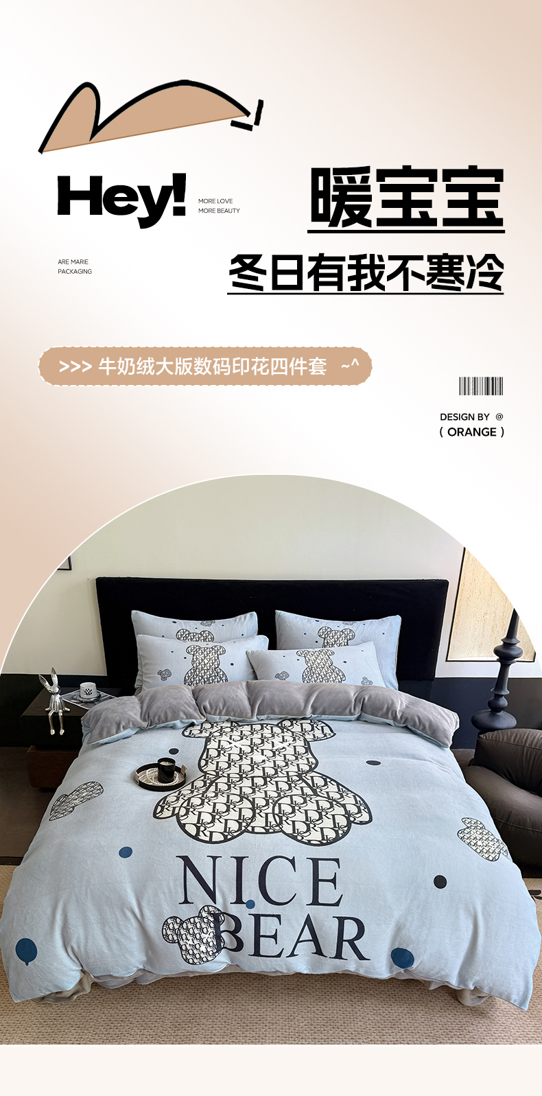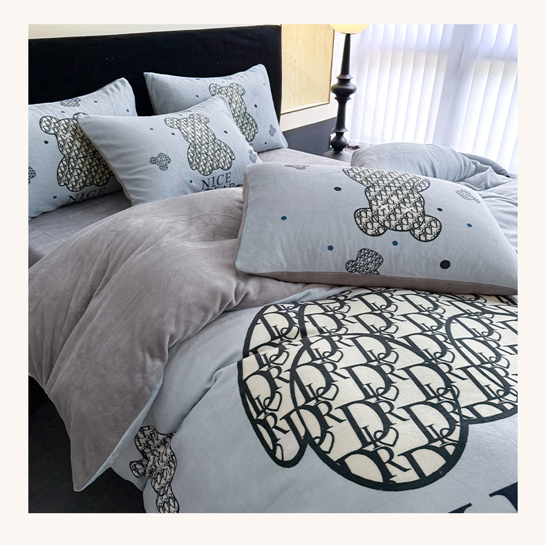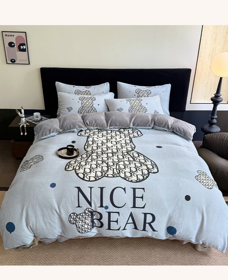 (总)摩卡(乐趣) 2025新款牛奶绒大版数码印花四件套,白香花,芬利熊,黑白V,灰迪,咔芬,卡布熊,可可熊,蓝白格,罗兰粉,萌迪,七彩熊,棋盘格公仔,山茶花,熊头白,熊仔白,熊仔咖