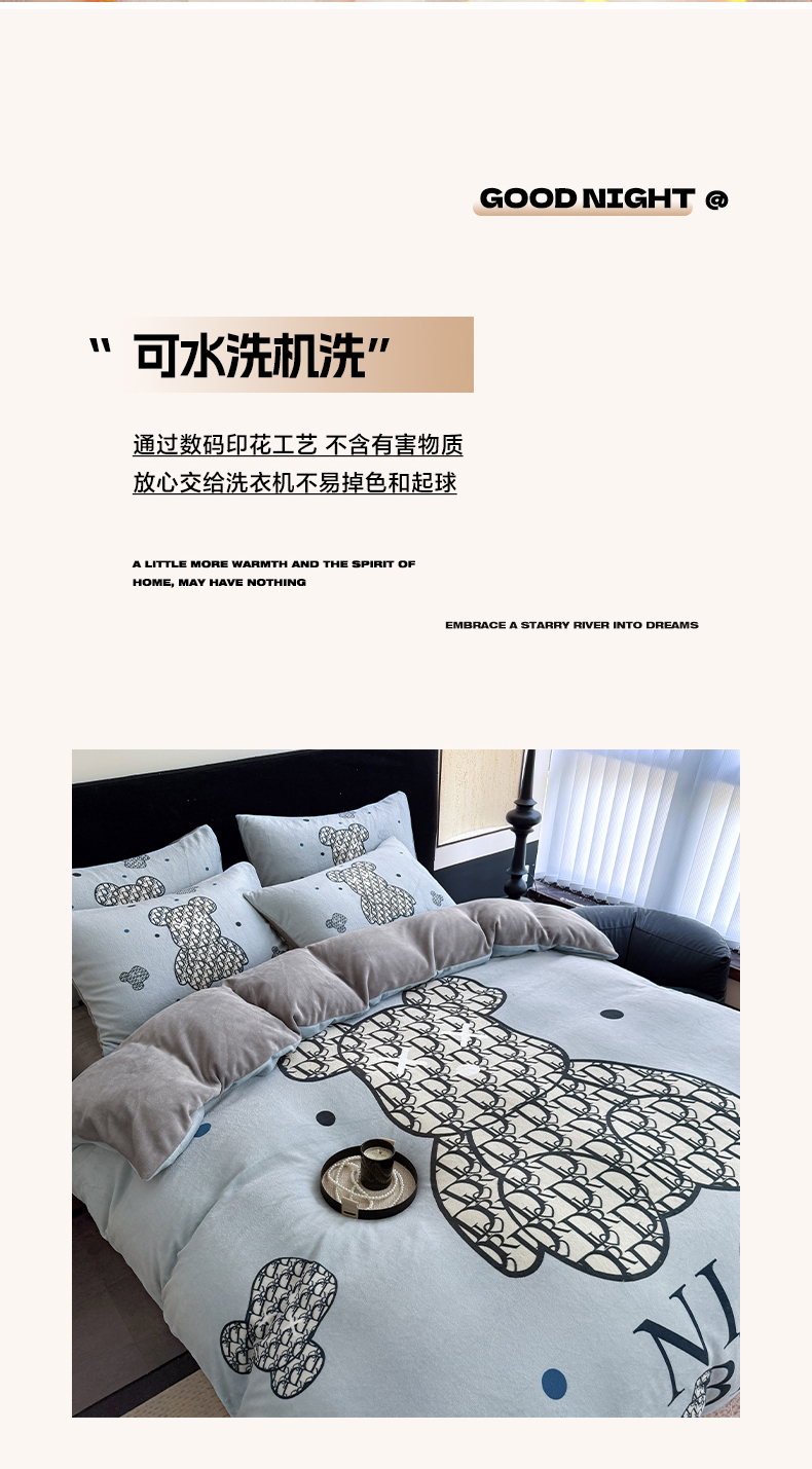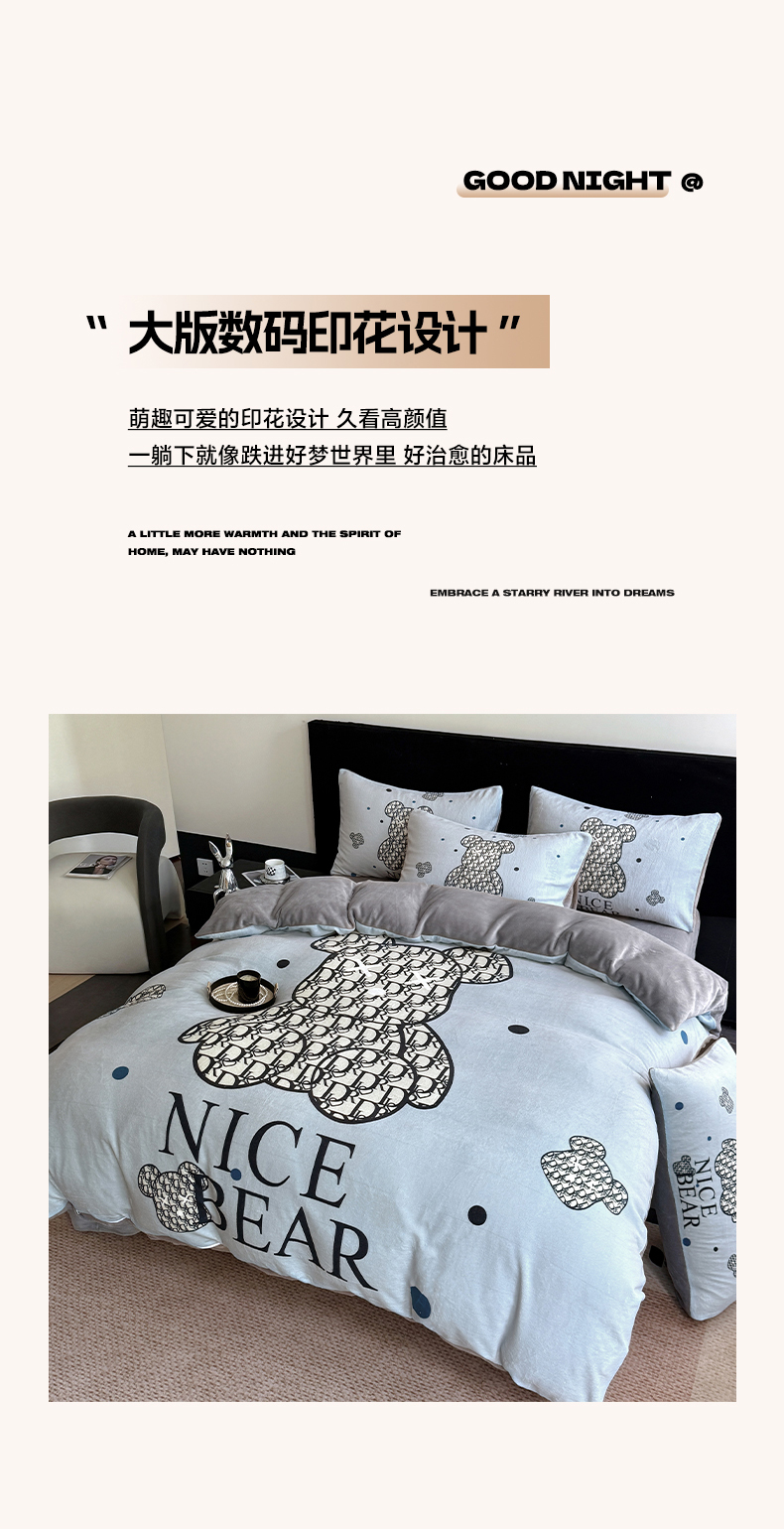 商品名称:摩卡(乐趣) 2025新款牛奶绒大版数码印花四件套 萌迪