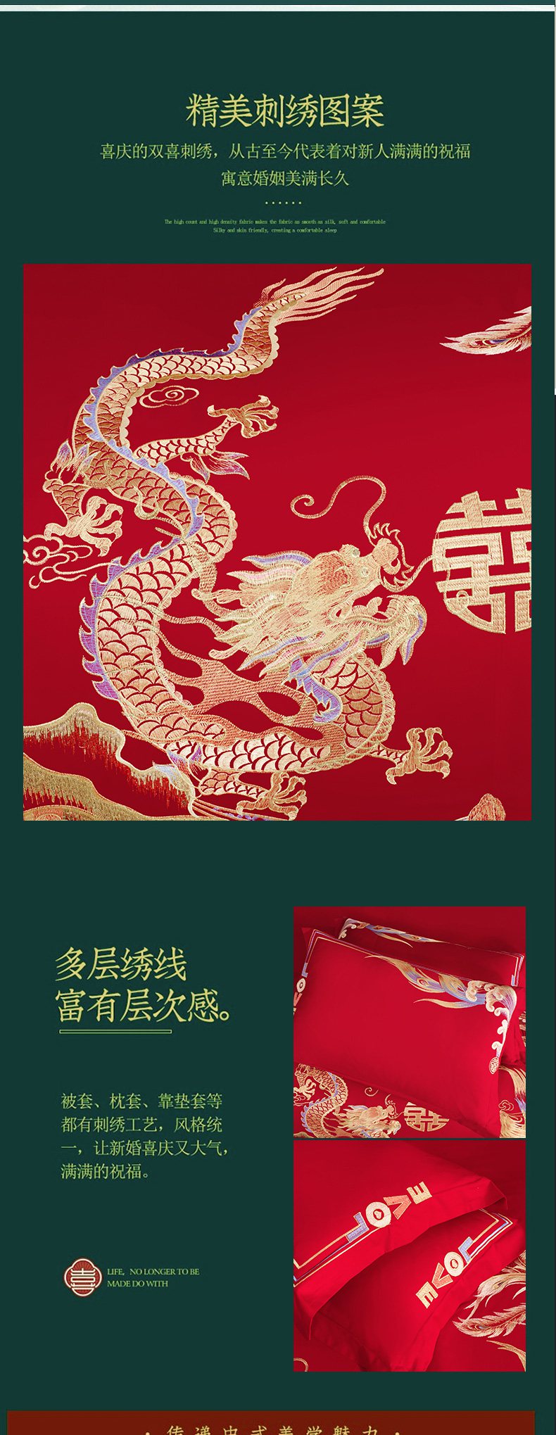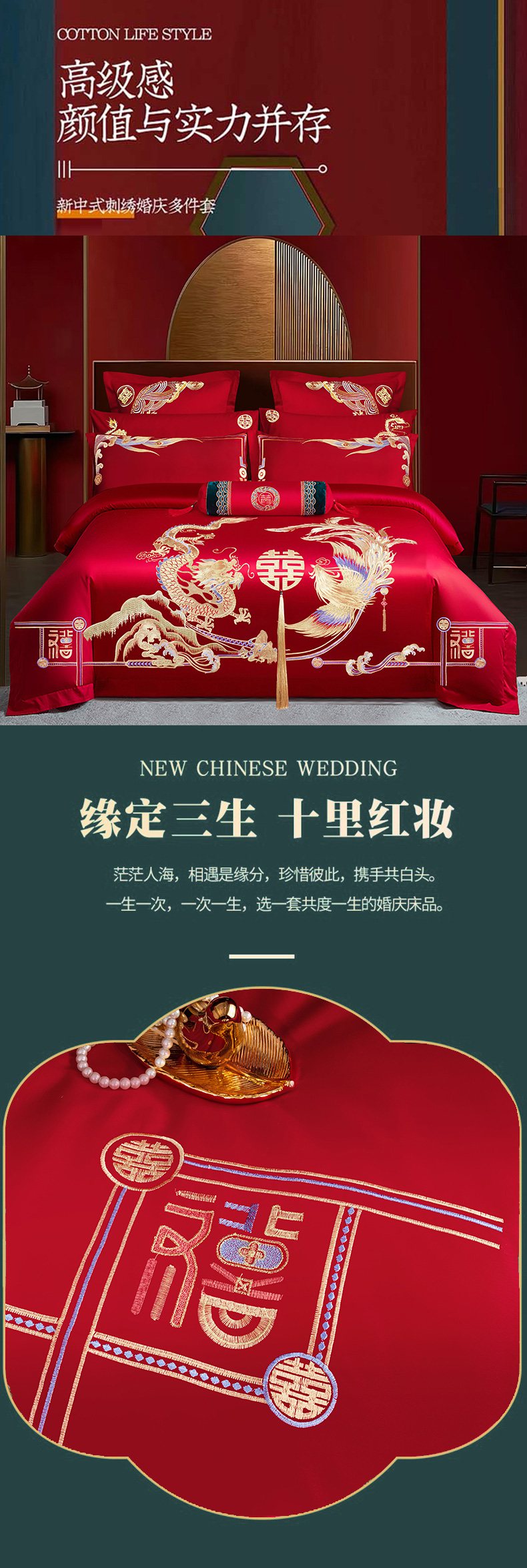 当前位置: 91家纺网 > 商品网购 > 床品套件 > 四件套 > 婚庆四件套 > 梵克保罗 2025秋冬新款全棉绣花婚庆四件套六件套靠垫 棉龙凤千禧