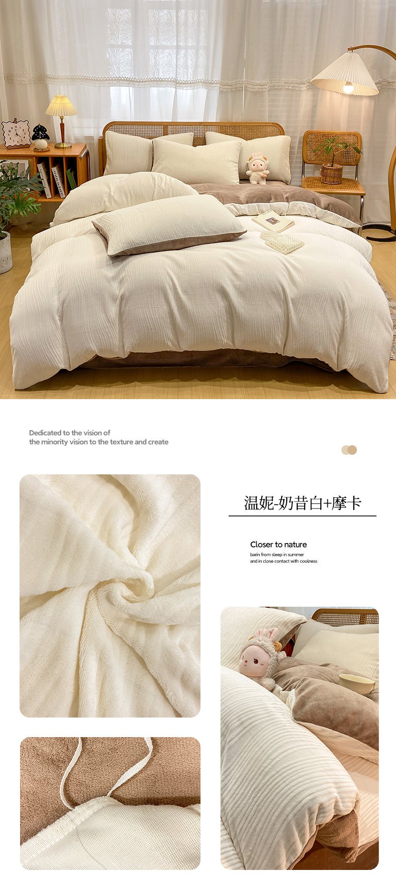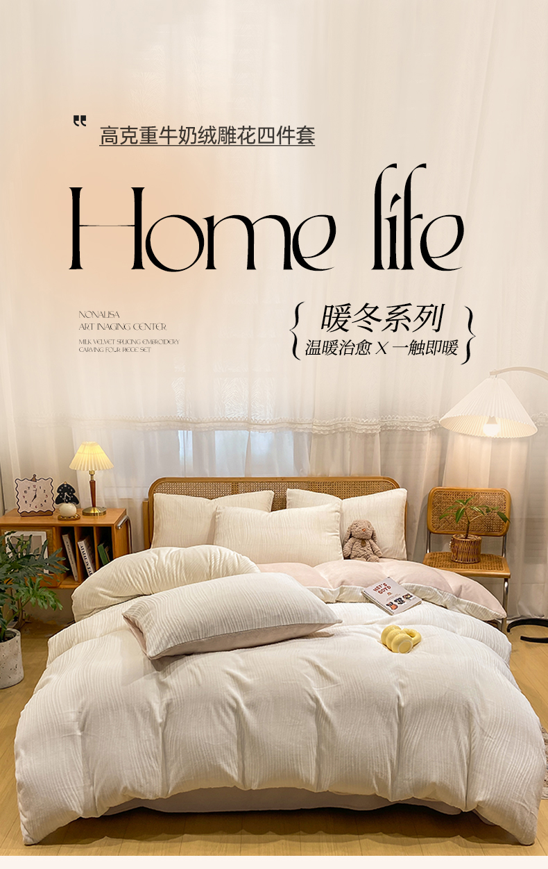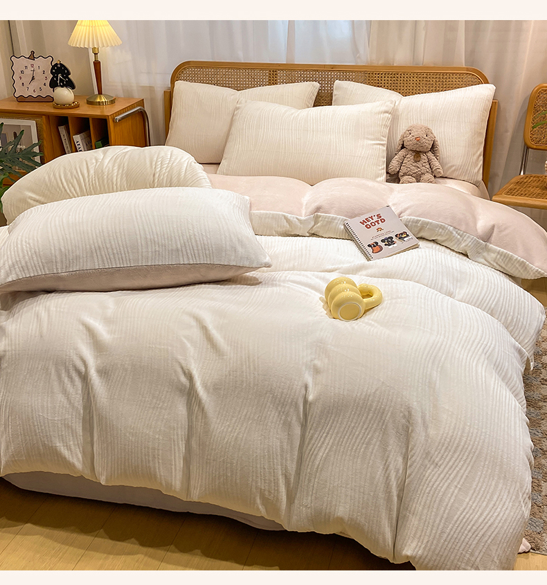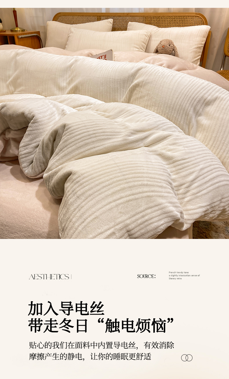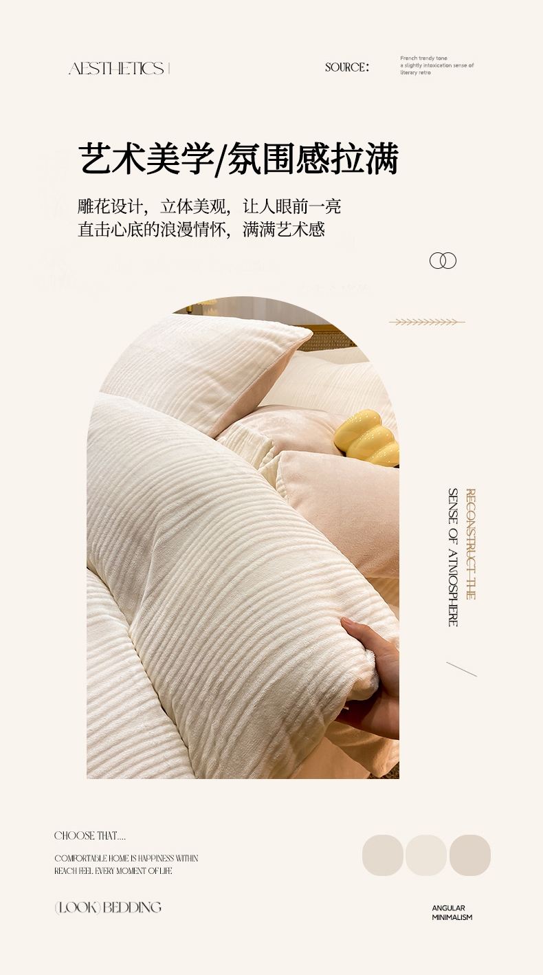 当前位置: 91家纺网 > 商品网购 > 床品套件 > 四件套 > 牛奶绒四件套 > 灰鲸 2025新款高克重牛奶绒雕花简约纯色四件套 温妮-奶昔白+奶茶