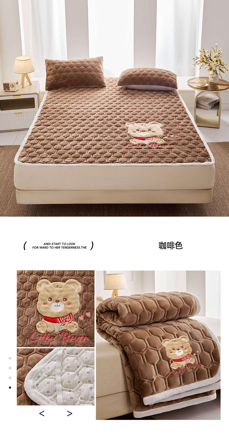 (总)初心家纺 2025新款卡通绣花牛奶绒夹棉床垫,组合图仅供展示-不可下单,可爱熊-芥末绿,可爱熊-咖啡色,可爱熊-蜜桃粉,可爱熊-柠檬黄,可爱熊-深海蓝,可爱熊-深灰,可爱熊-天蓝