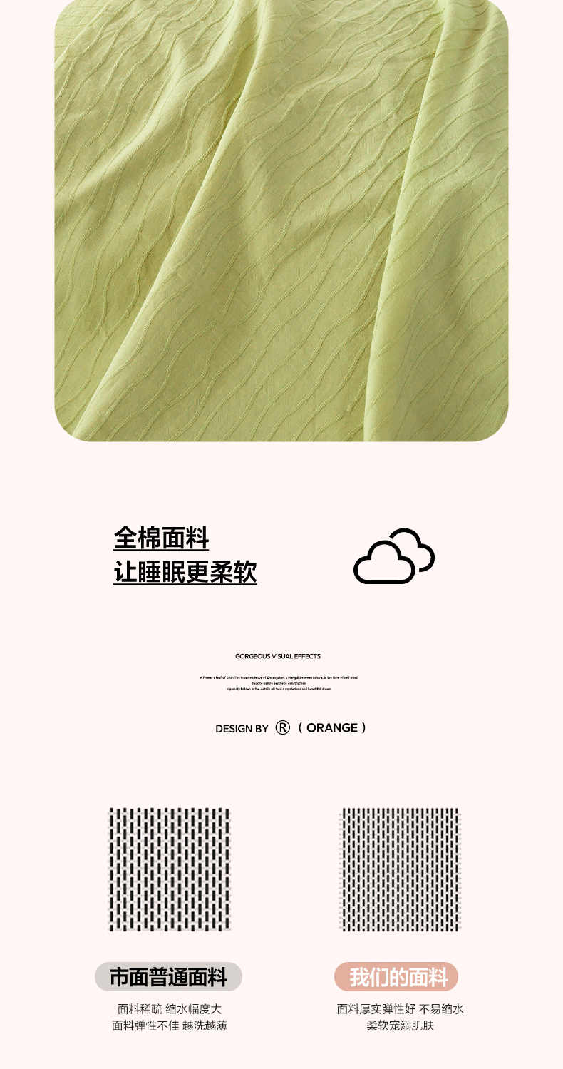 商品名称:恋人优选 2025新款全棉纯棉色织提花枕套 波纹纱-心漾绿