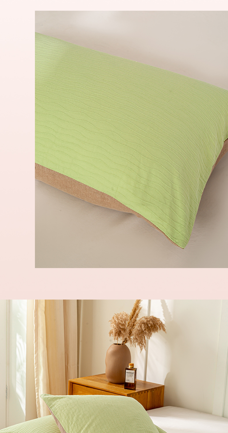恋人优选 2025新款全棉纯棉色织提花枕套 波纹纱-心漾绿