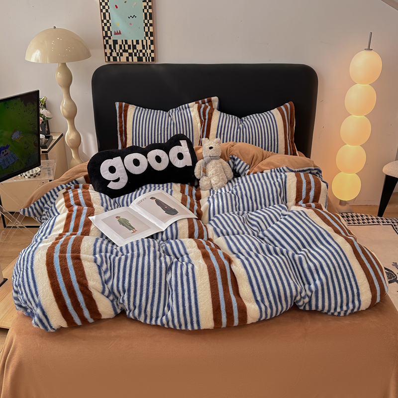 (总)一比一家纺 2025新款加厚保暖兔毛绒兔兔绒四件套-豹纹系列,豹纹-粉条,豹纹-灰条,豹纹-咖条,豹纹-绿条,豹纹-紫条