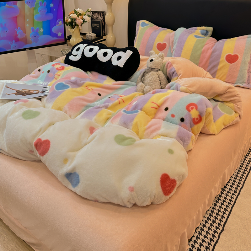(总)一比一家纺 2025新款亲肤舒适兔毛绒兔兔绒牛奶绒四件套,爱心,豹纹-咖,波点-咖,波点-奶白,碟梦,蝴蝶结点点-粉,蝴蝶结点点-咖,花语,花园兔,花园熊,怦然心动,紫色花语