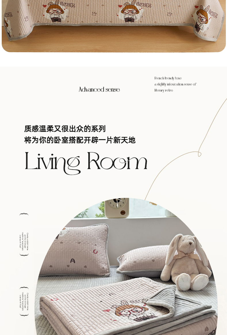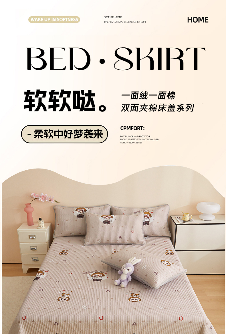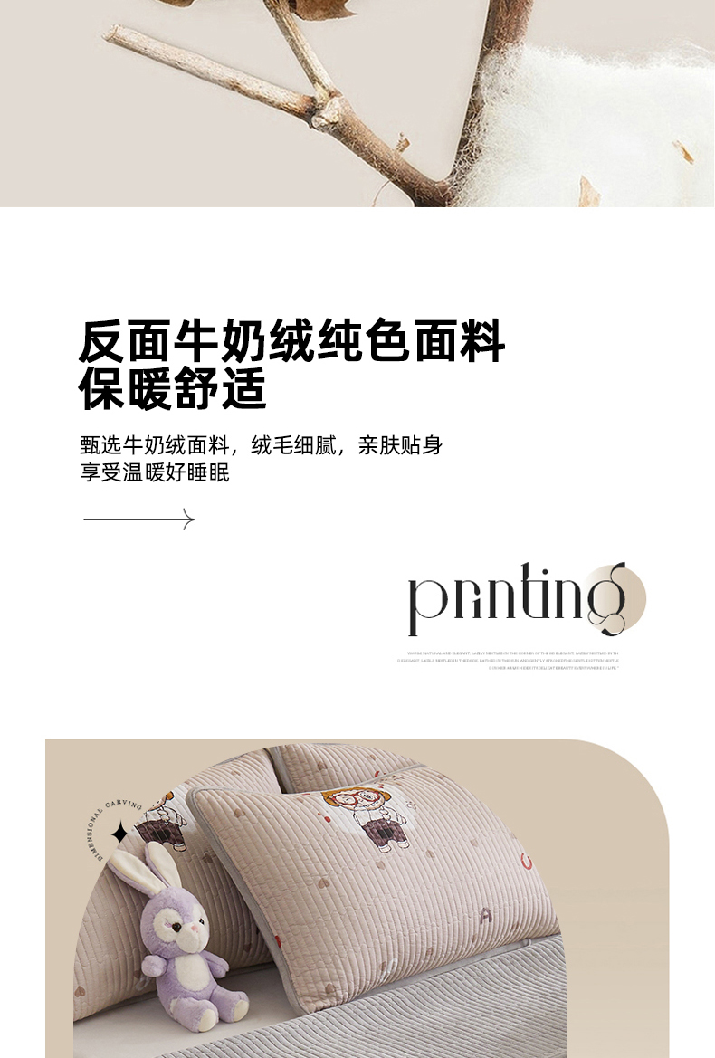 • 91家纺网 家纺一手货源 找家纺 金艾草 2025新款A版全棉印花B版加厚牛奶绒单件棉加绒床盖三件套榻榻米垫 拉布布-灰