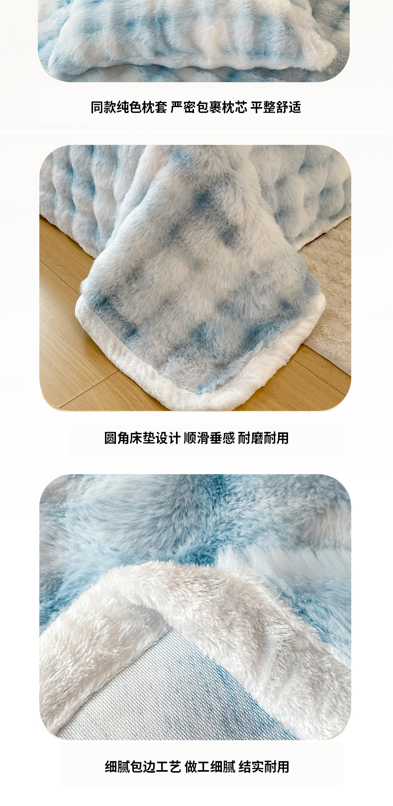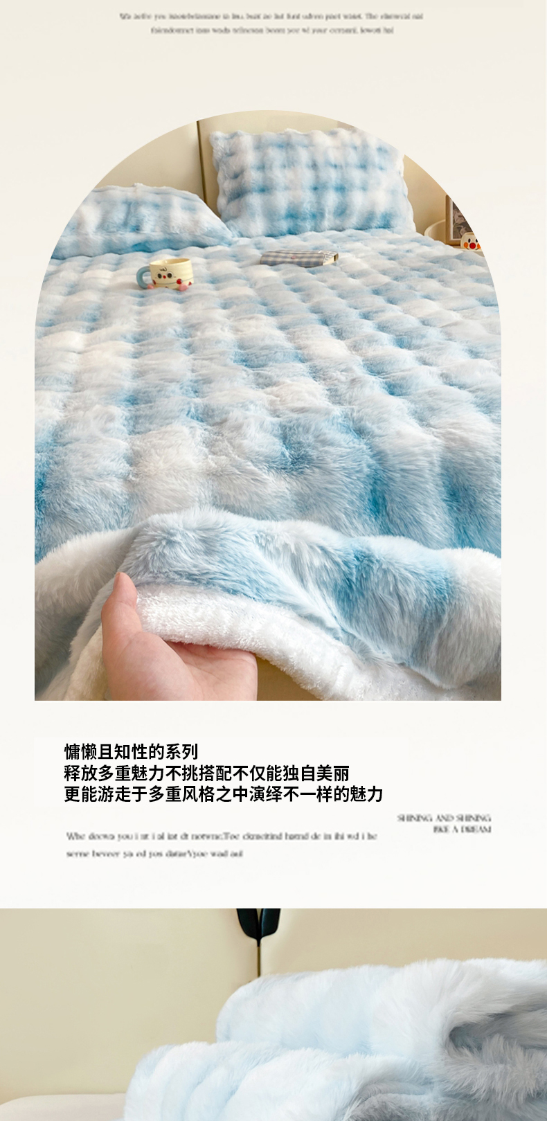 • 91家纺网 家纺一手货源 找家纺 麒东家纺 2025新款泡泡绒兔毛绒床单 流彩蓝