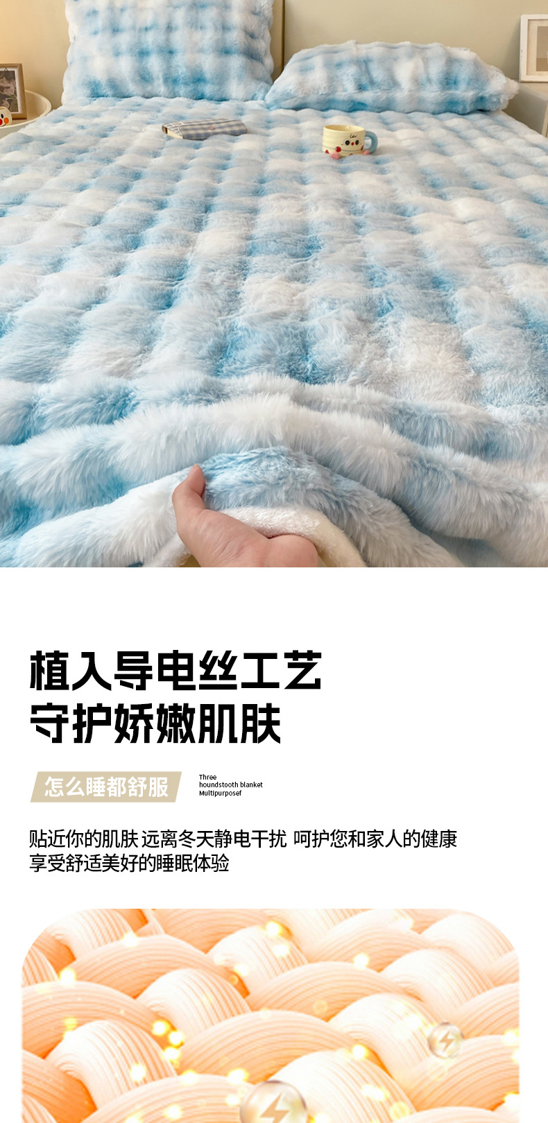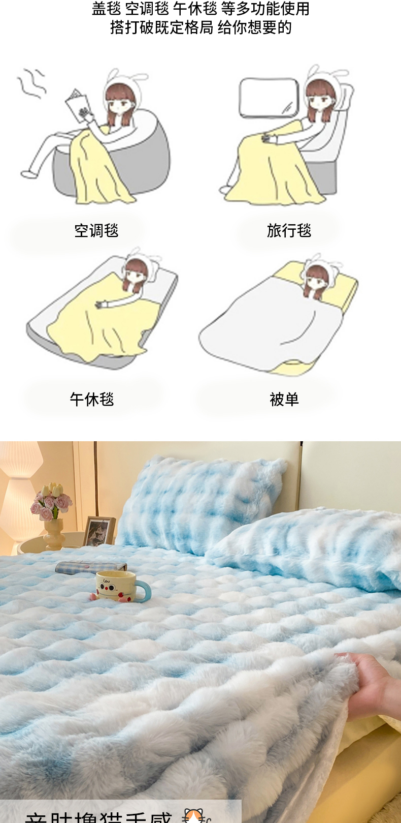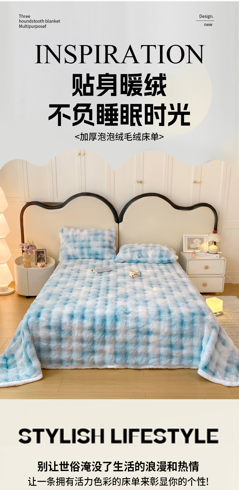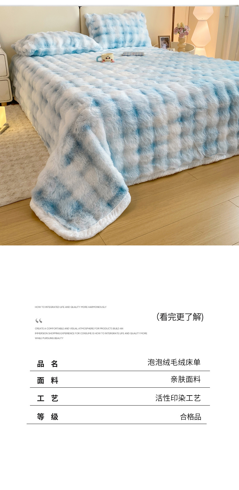 麒东家纺 2025新款泡泡绒兔毛绒床单 流彩蓝