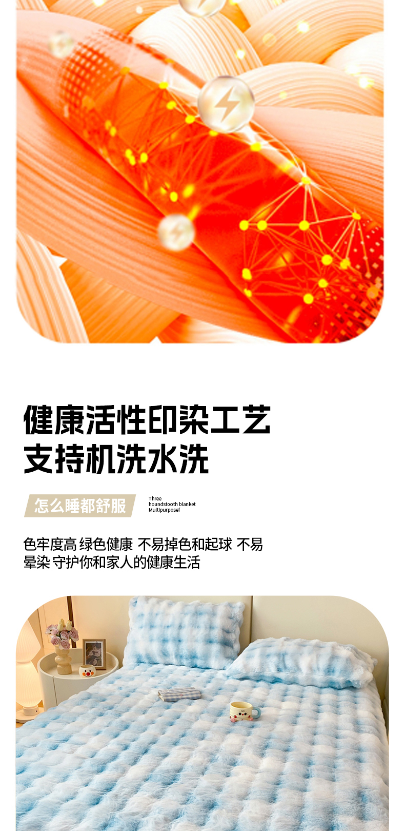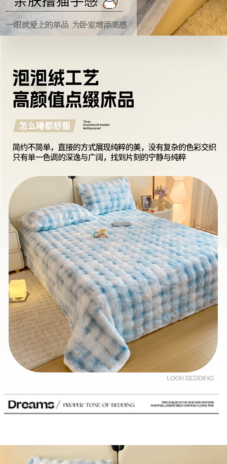 (总)麒东家纺 2025新款泡泡绒兔毛绒床单,流彩粉,深灰,咖色,米白,天蓝,流彩蓝,流彩绿,流彩紫