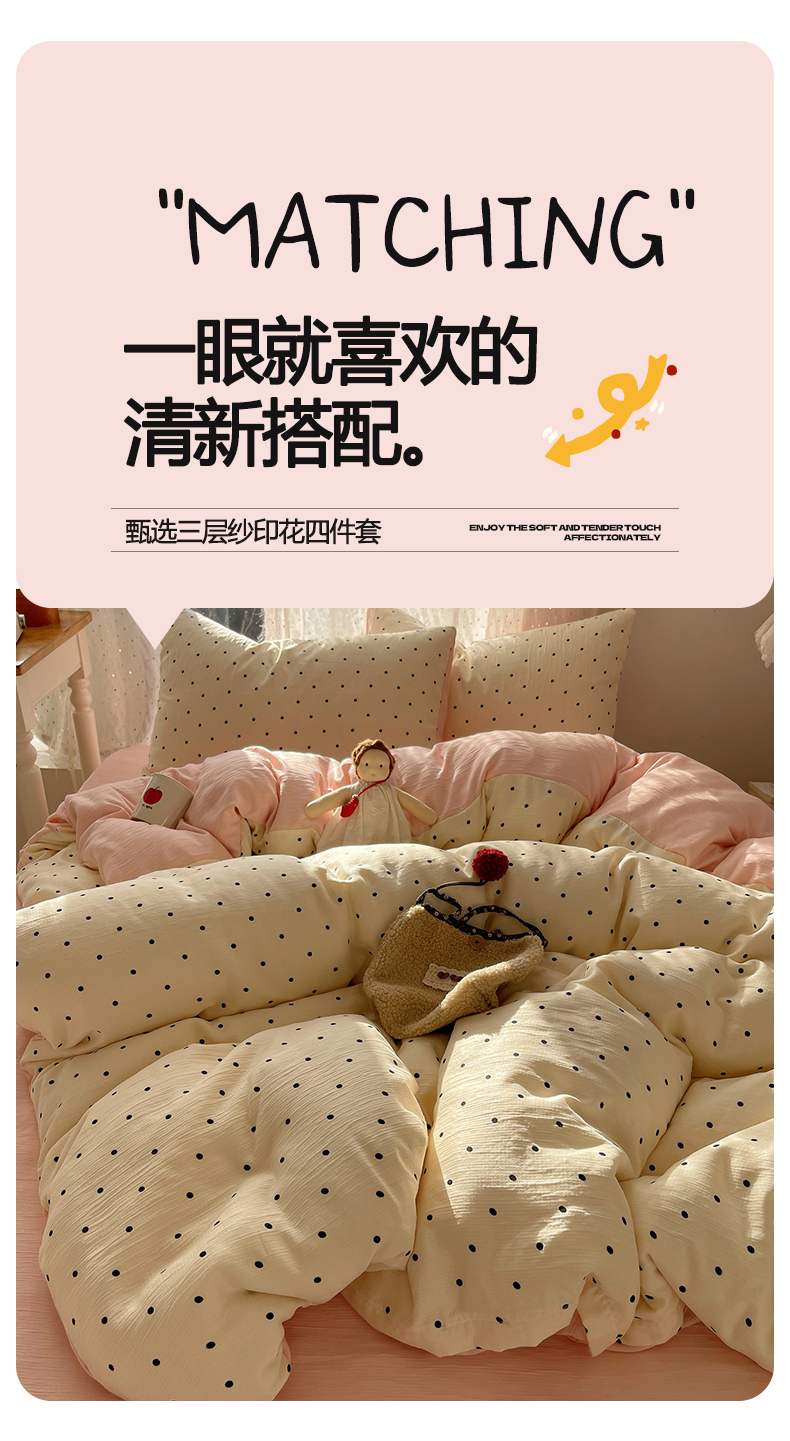 当前位置: 91家纺网 > 商品网购 > 床品套件 > 四件套 > 其它四件套 > 星禾优选 2025新款甄选三层纱印花四件套 小黑豆