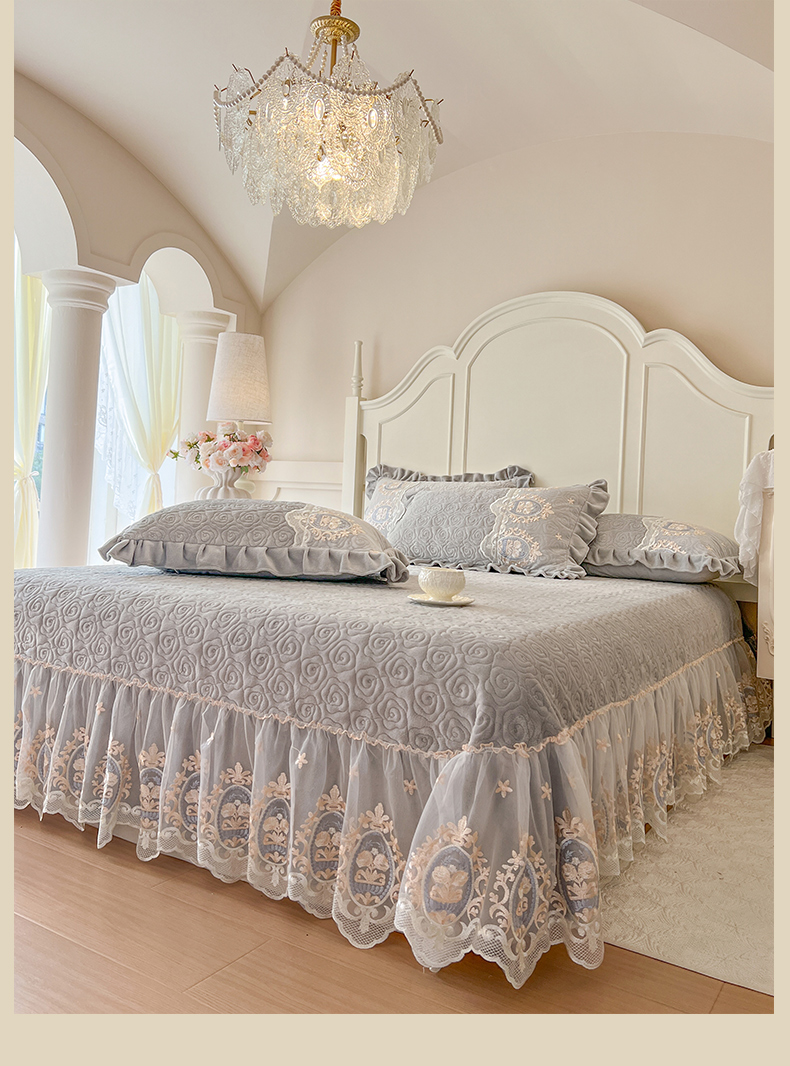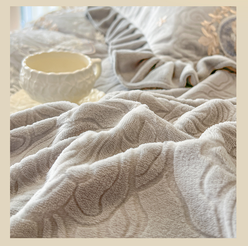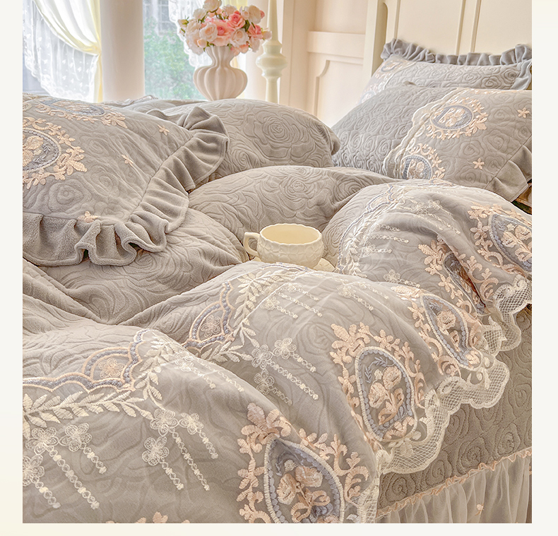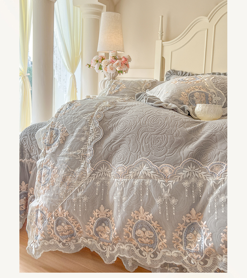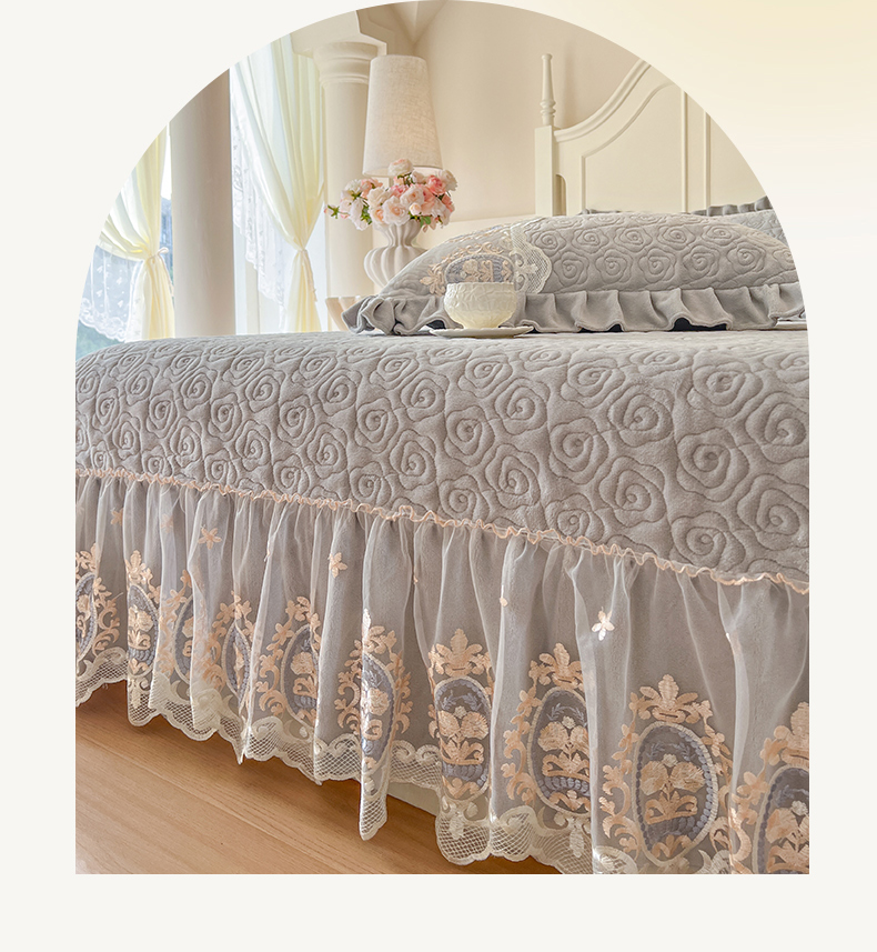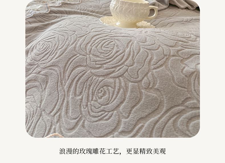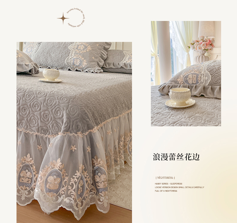 商品名称:恋尚 2025新款雕花牛奶绒绗缝夹棉床盖单品-可可西里(控价145起) 可可西里-椰蓉灰
