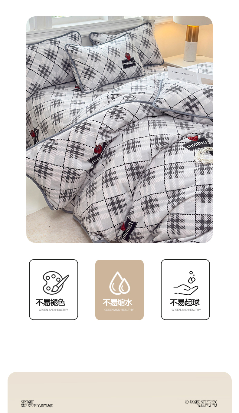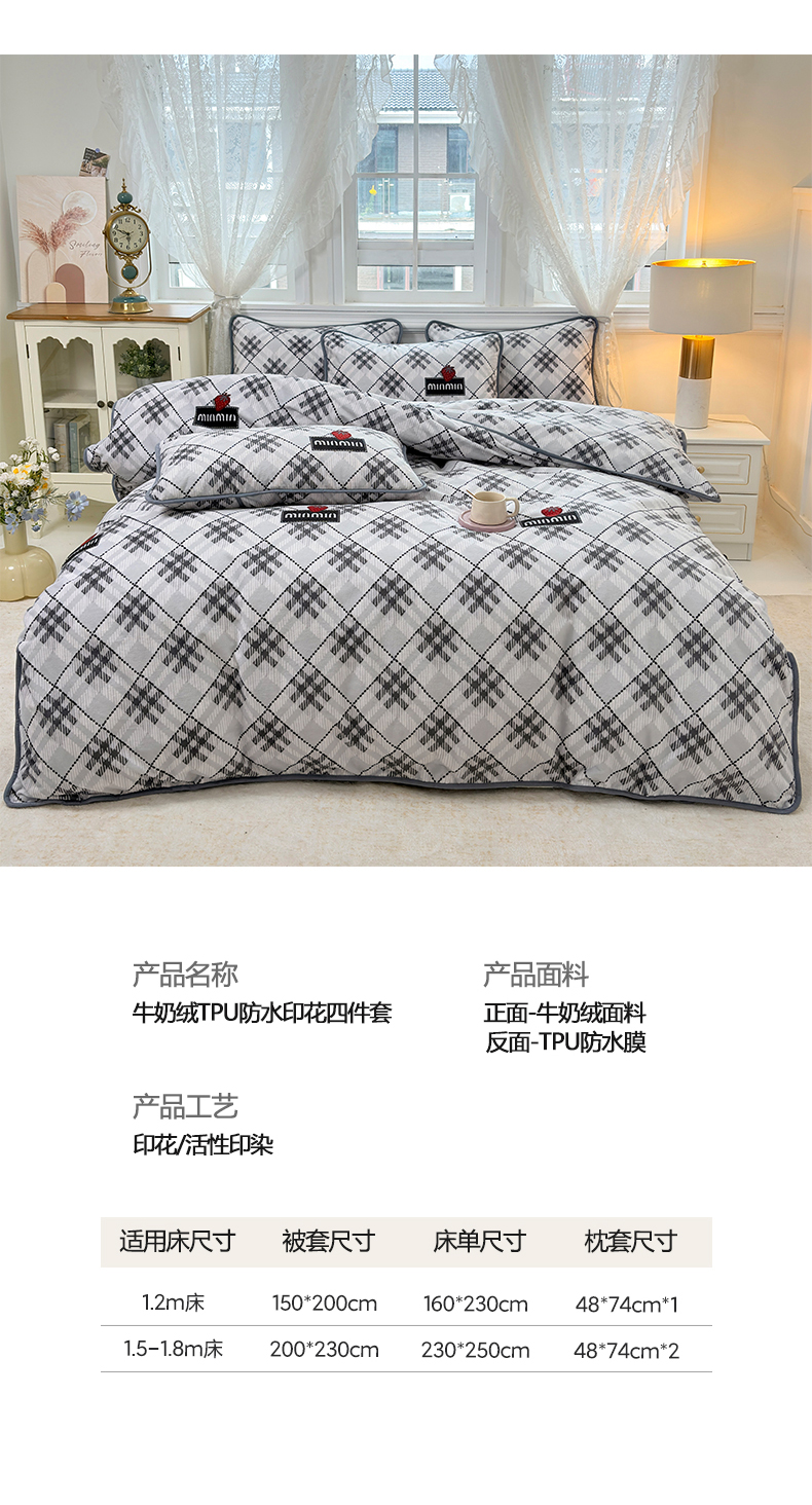当前位置: 91家纺网 > 商品网购 > 床品套件 > 四件套 > 牛奶绒四件套 > 茗婷家纺 2025新款牛奶绒防水被套床单枕套四件套图供跨境外贸 英伦风深灰