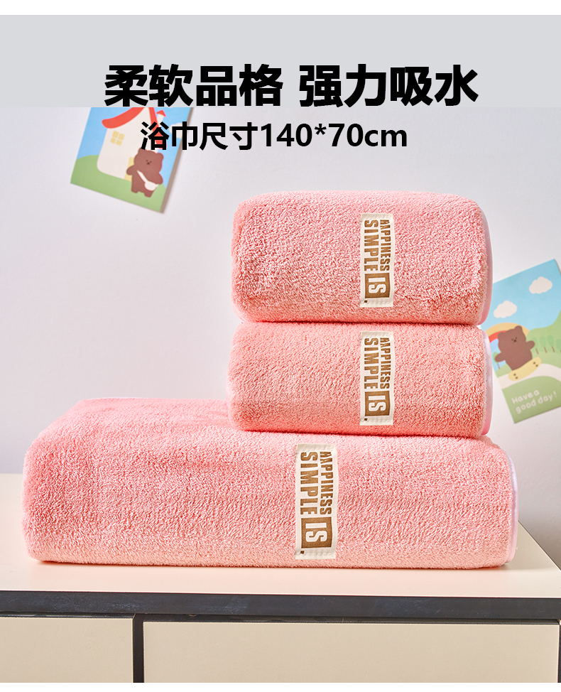 当前位置: 91家纺网 > 商品网购 > 居家日用 > 毛巾/浴巾/浴袍 > 浴巾 > 棠薇家纺 2025新款速干浴巾厚款强吸水超细纤维浴巾毛巾套件 布标紫1浴巾+1毛巾 毛巾74*34浴巾140*70cm