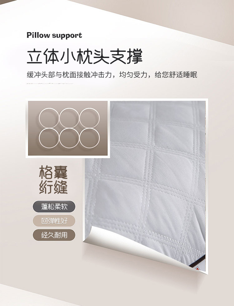 商品名称:雅晨枕芯 2025新款绗缝枕芯立体网边单边三线格枕头枕芯 三线格单边-灰边