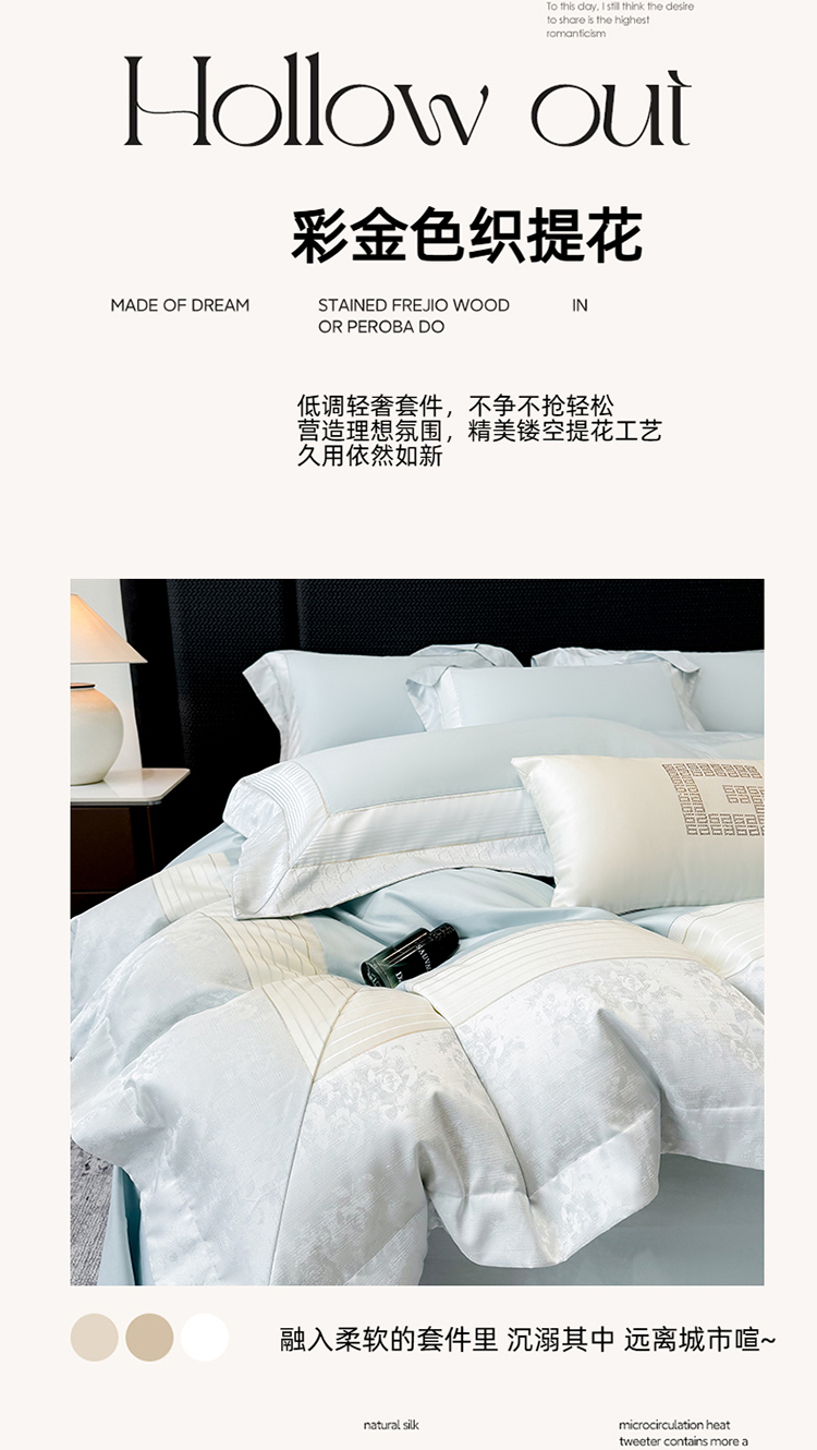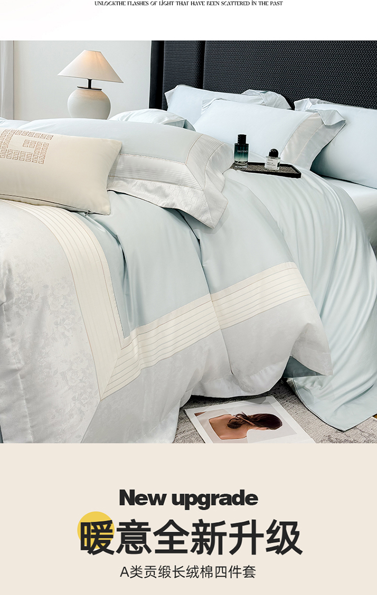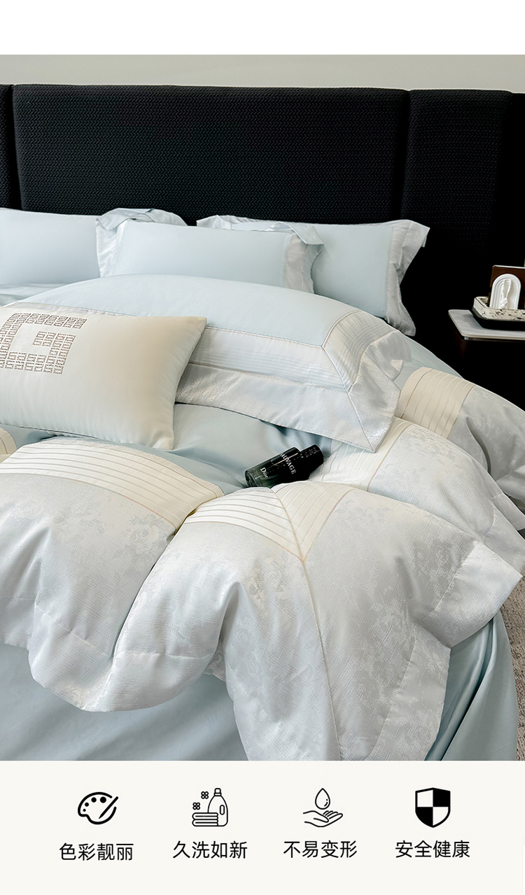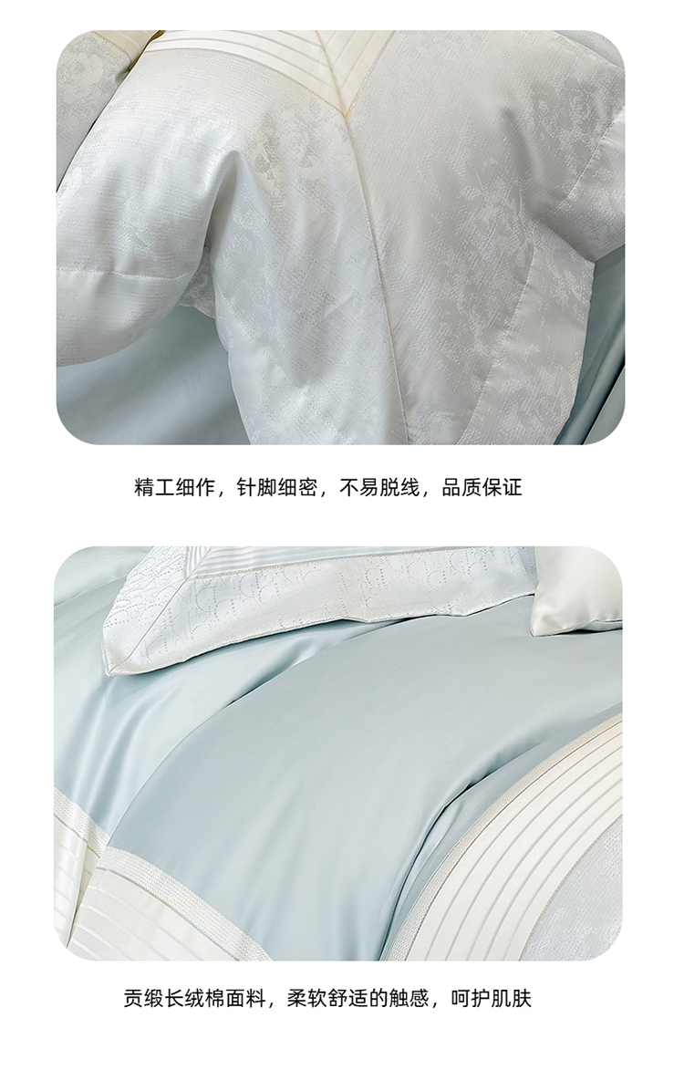 当前位置: 91家纺网 > 商品网购 > 床品套件 > 四件套 > 贡缎全棉四件套 > 高档礼盒装彩金色织提花+50*50S贡缎长绒棉纯棉加厚磨毛四件套100%全棉 祖玛蓝-玛奇朵-彩金色织提花纯棉磨毛