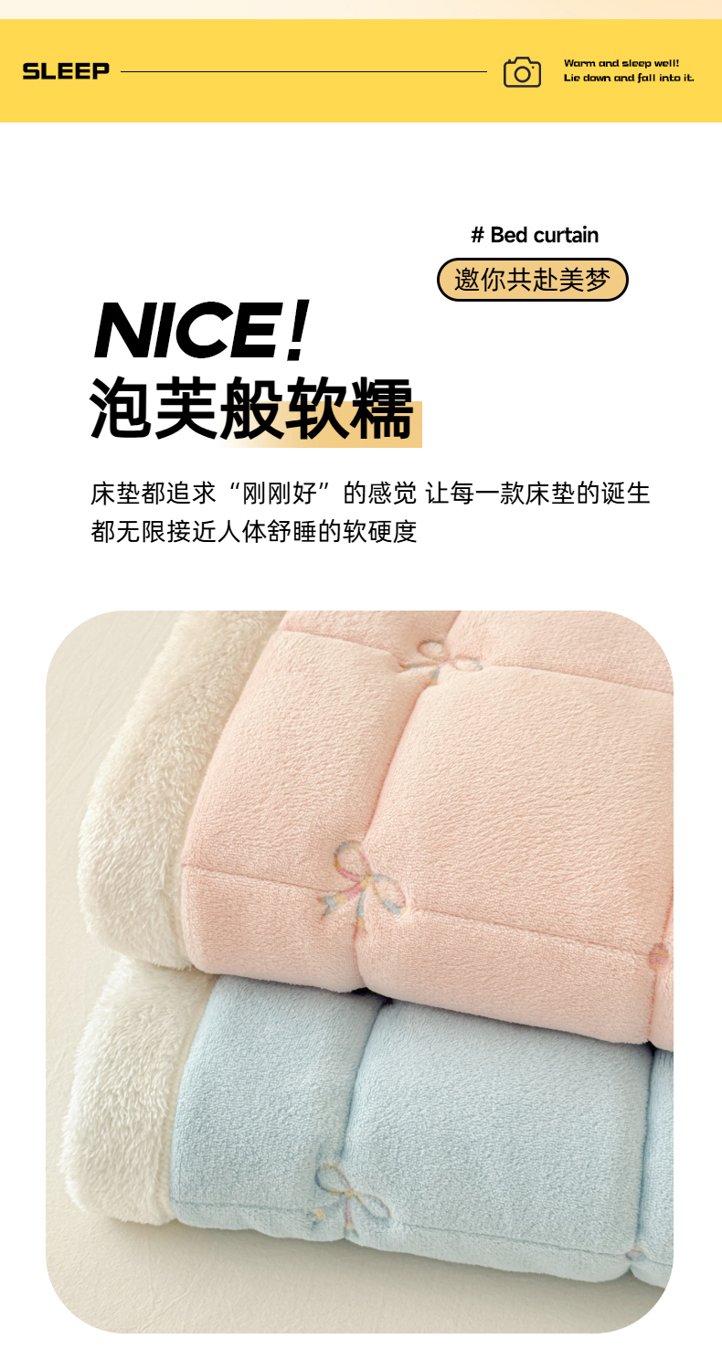 (总)沐辰 2025新款A类双色牛奶绒绗绣夹棉床垫-炫彩同心结系列