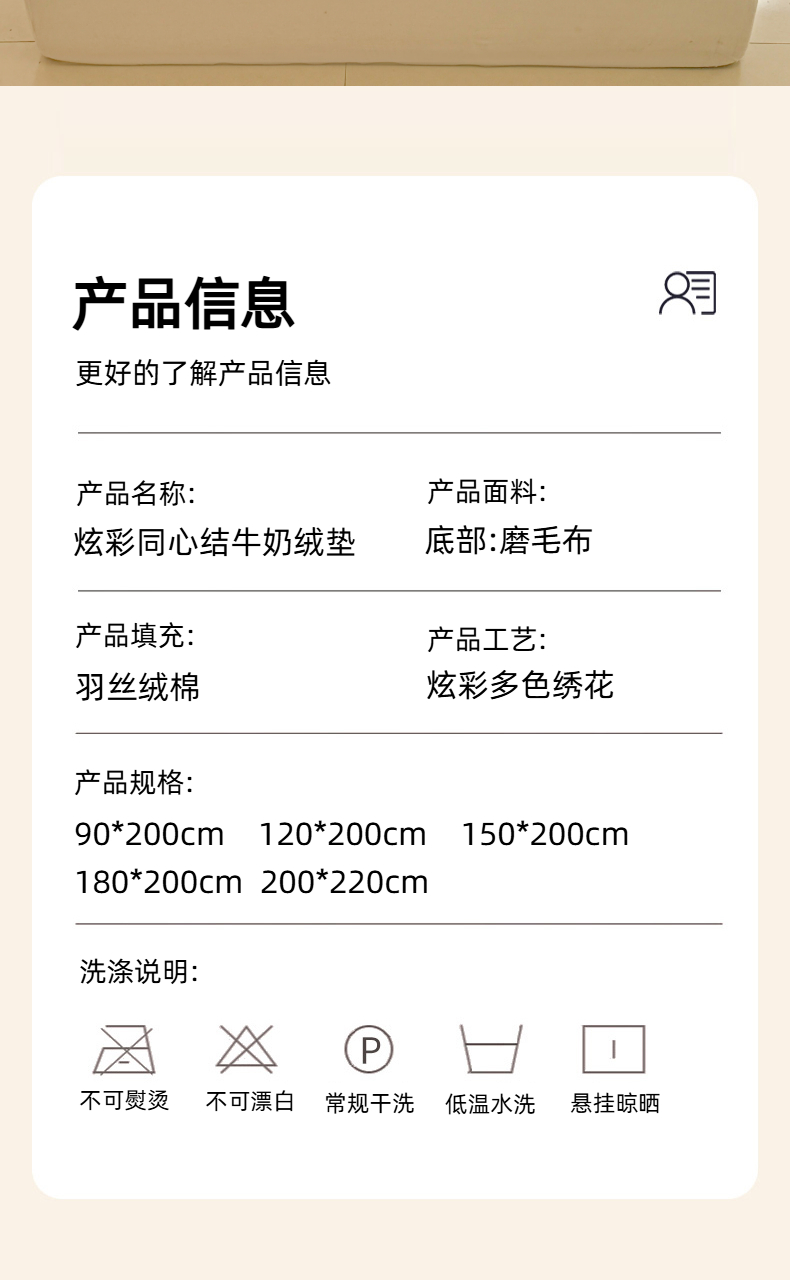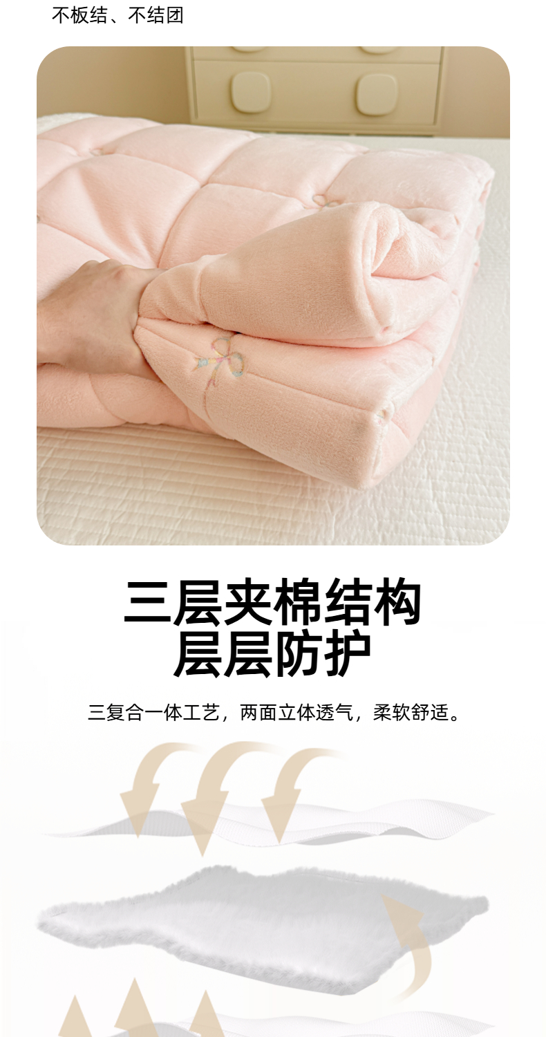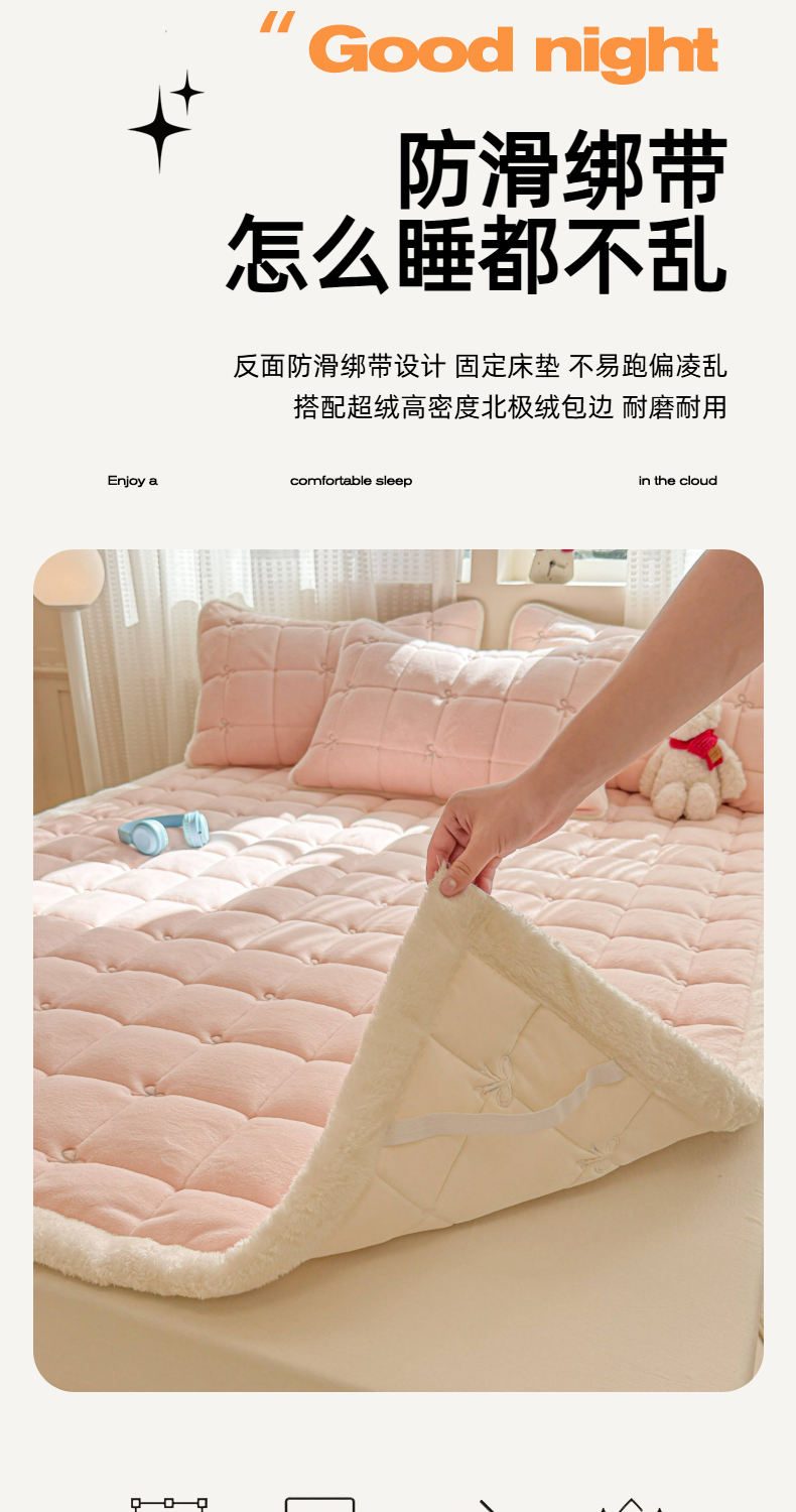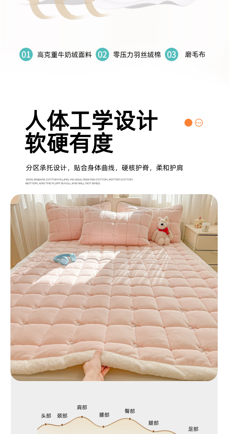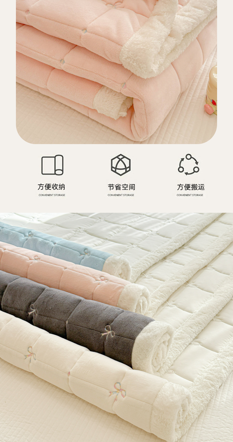 商品名称:(总)沐辰 2025新款A类双色牛奶绒绗绣夹棉床垫-炫彩同心结系列