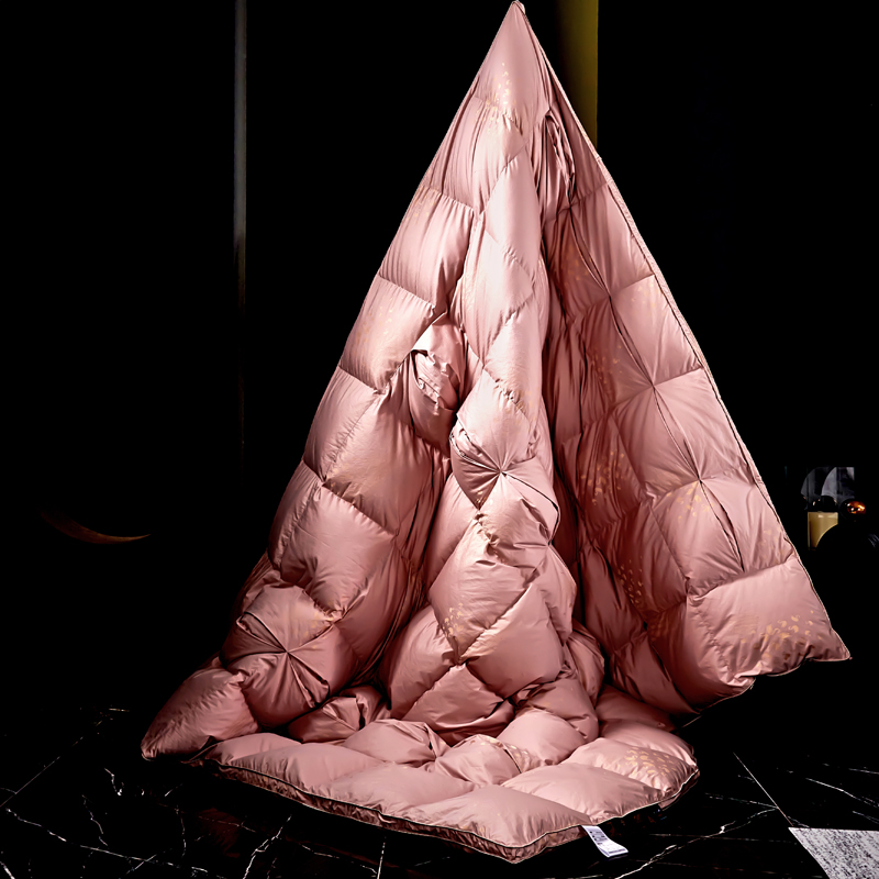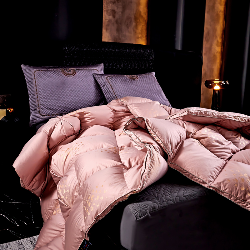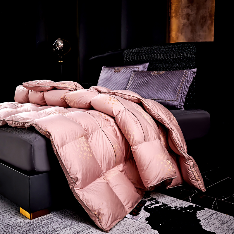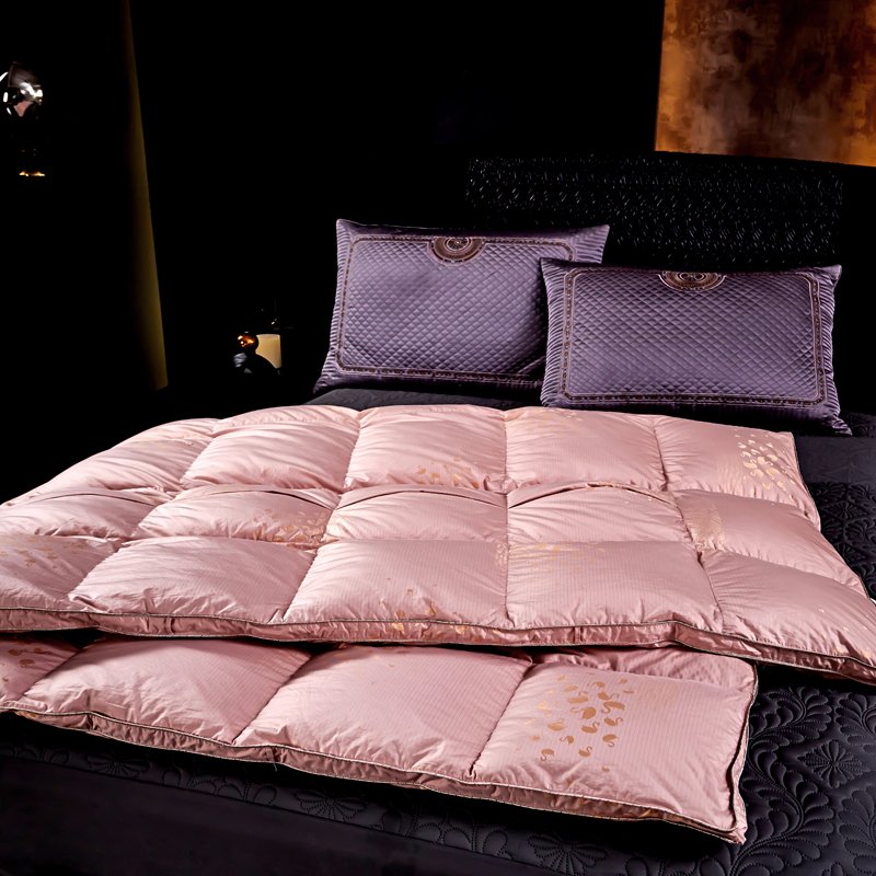 抗日家纺 专版新品羽绒被壳 高密银丝苏绣提花工艺款羽绒被 千禧之约 藕粉