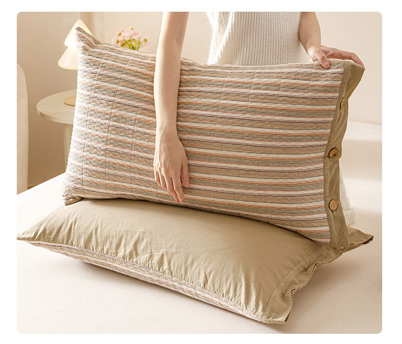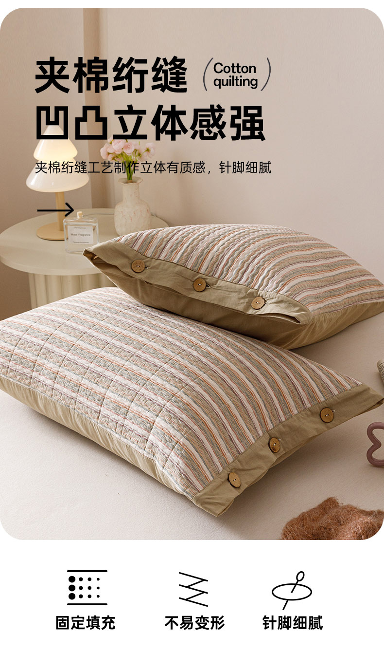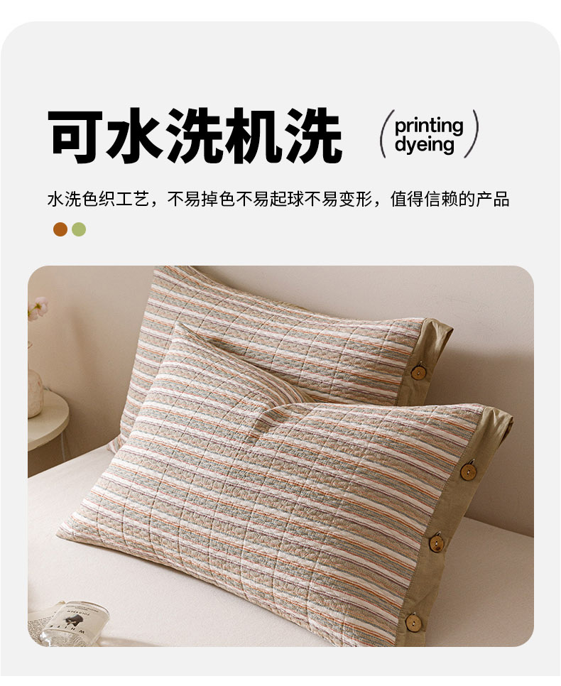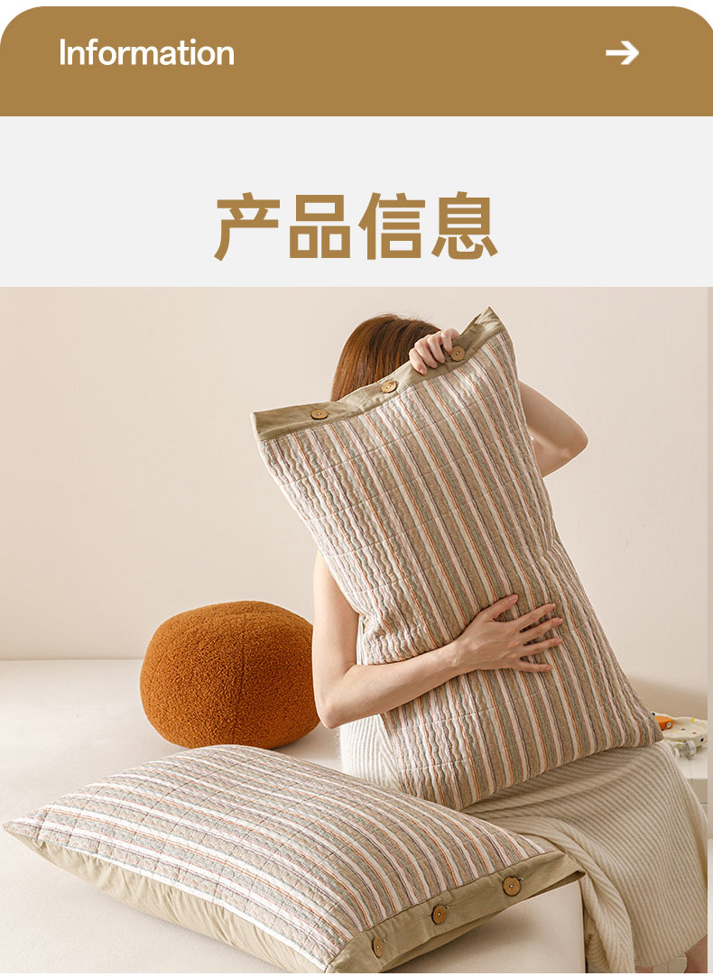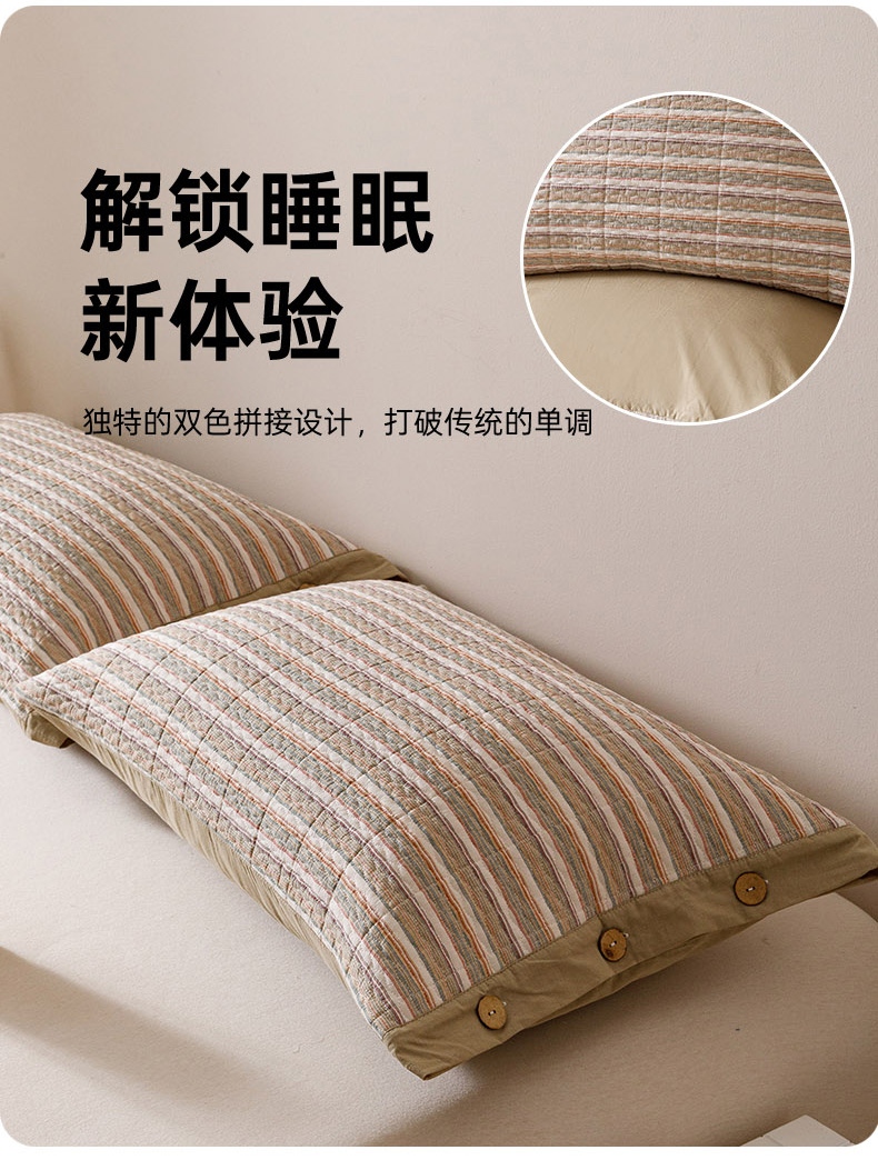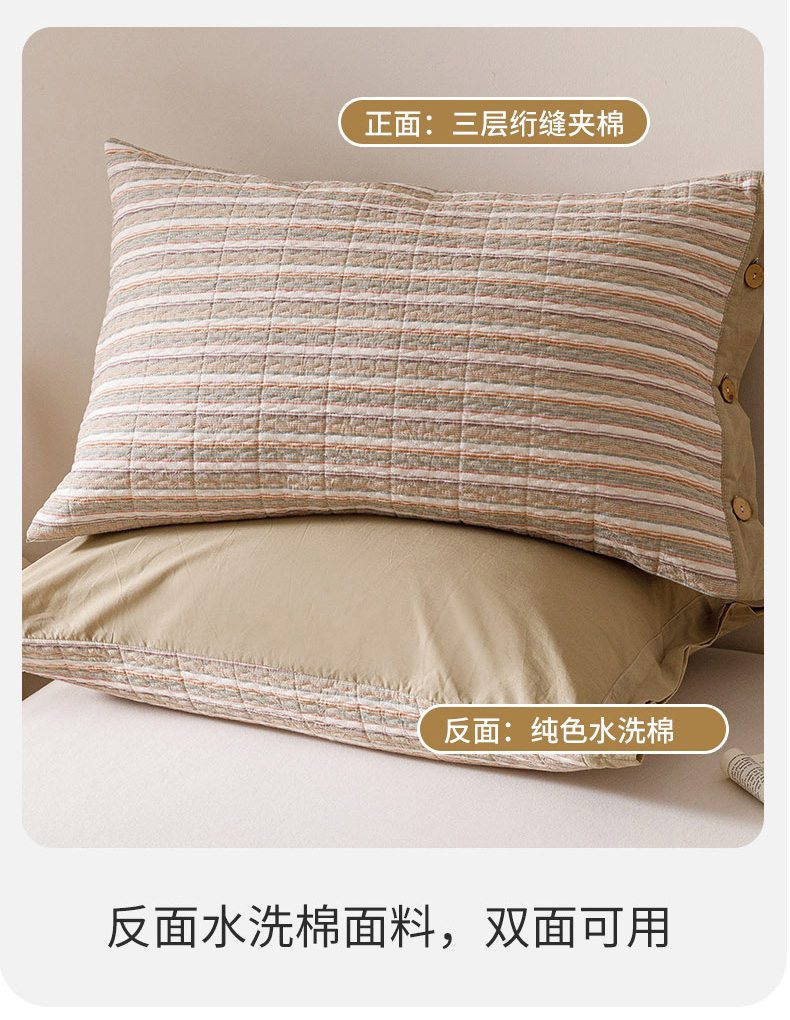 商品名称:爱港家纺 2025新款全棉色织水洗加厚绗缝夹棉防头油双面枕头套单品枕套单件枕套 小时代咖