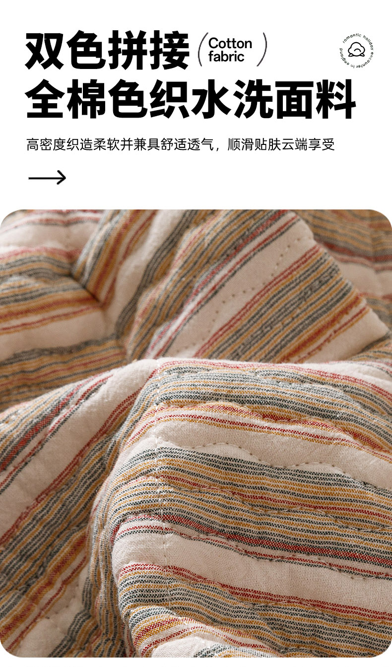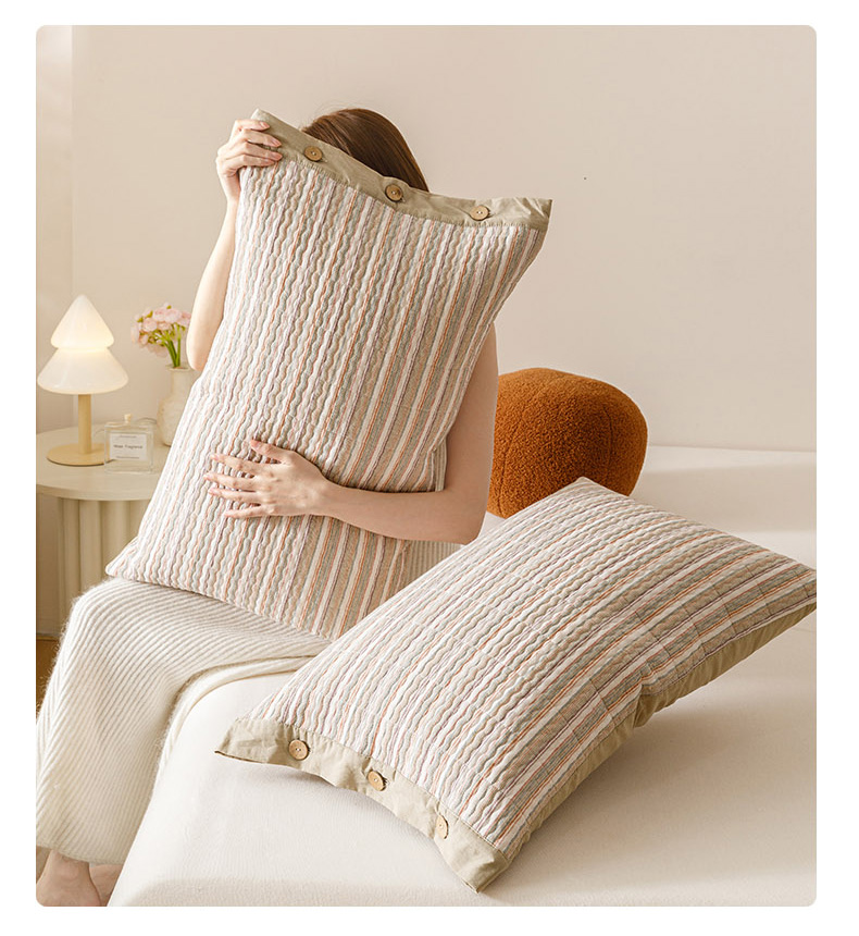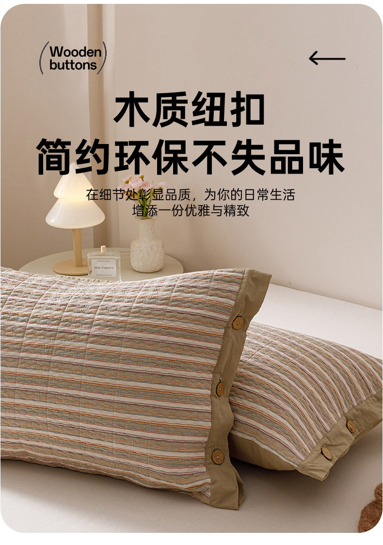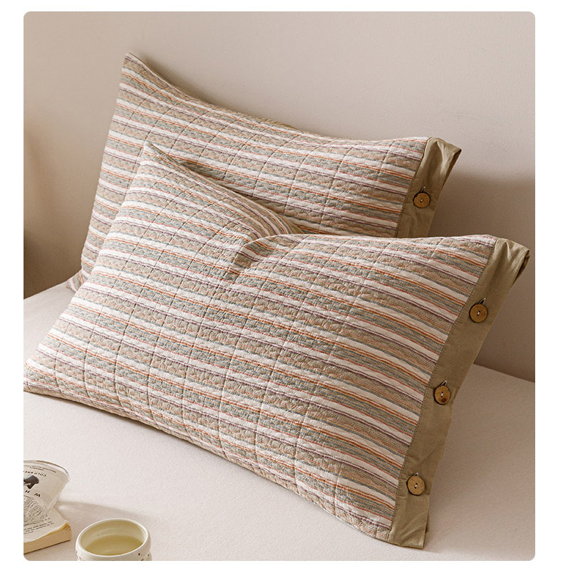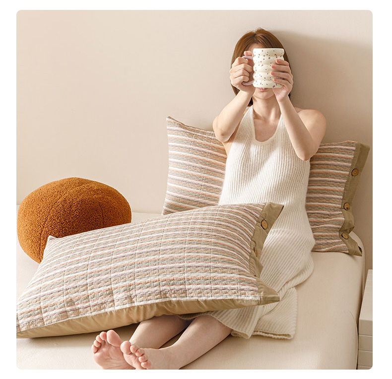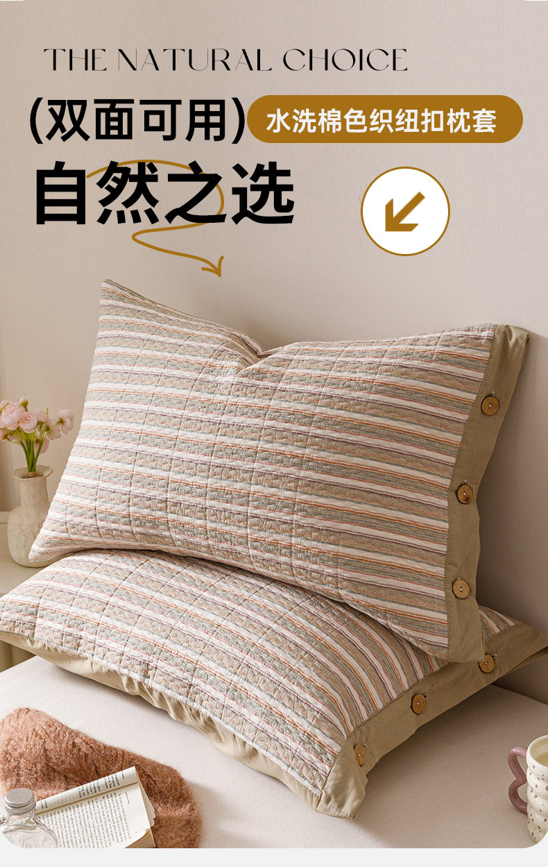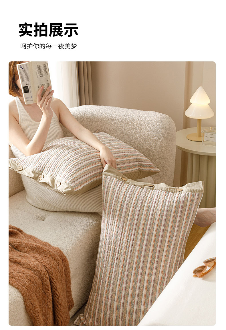 商品名称:爱港家纺 2025新款全棉色织水洗加厚绗缝夹棉防头油双面枕头套单品枕套单件枕套 小时代咖