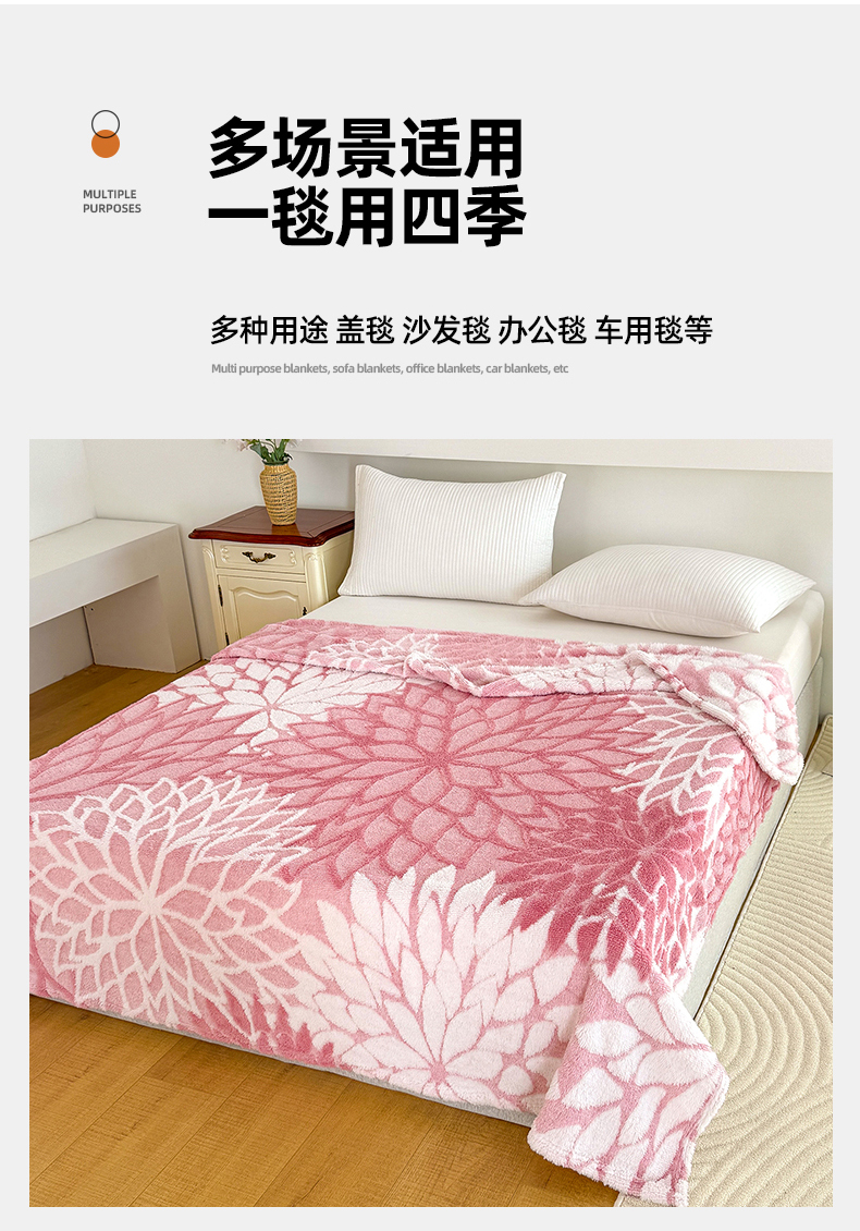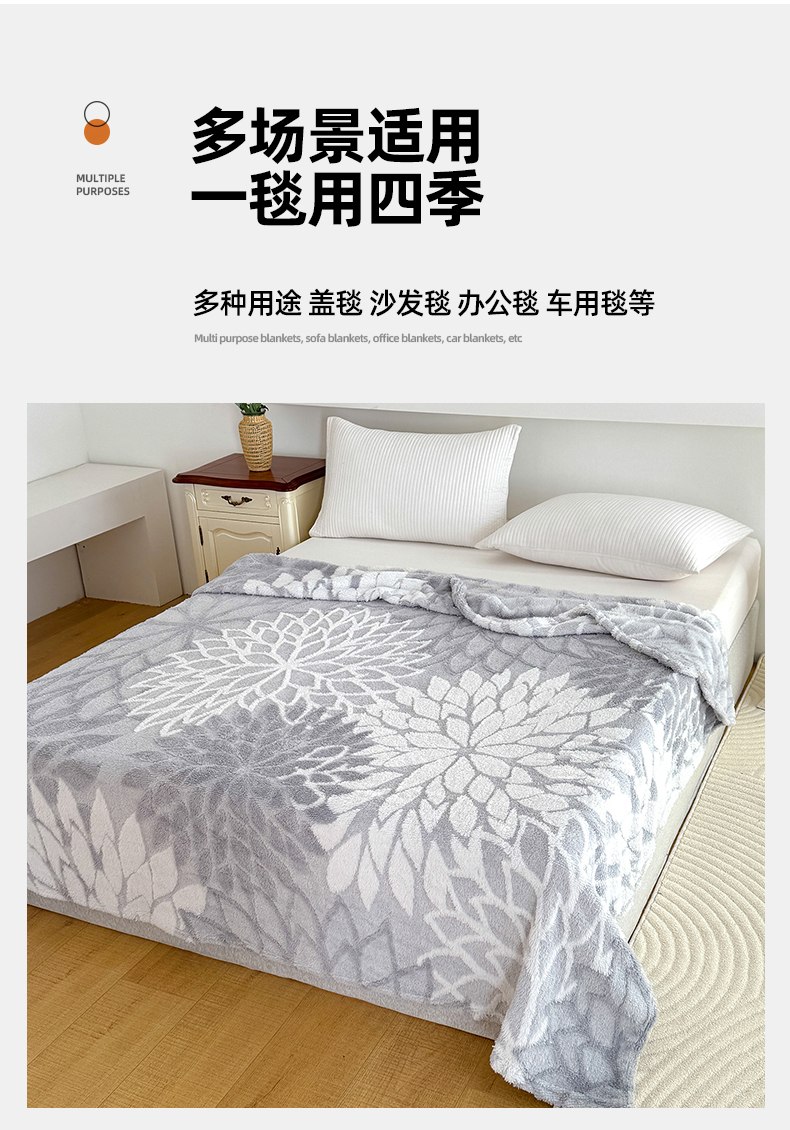(总)枋梢家纺 2025新款亮丝兔毛绒兔毛提花暖居花漾羊羔绒 双层加厚保暖盖毯 居家午睡保暖毯,花漾-粉色,花漾-咖色,花漾-绿色,花漾-米黄,花漾-浅灰,花漾-深灰,花漾-驼色,花漾-紫色,包装