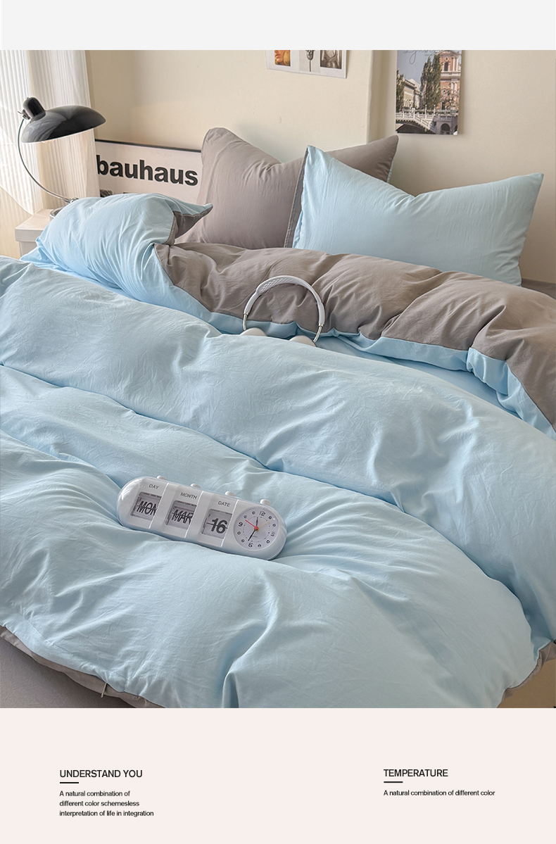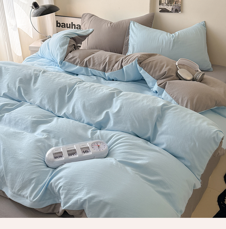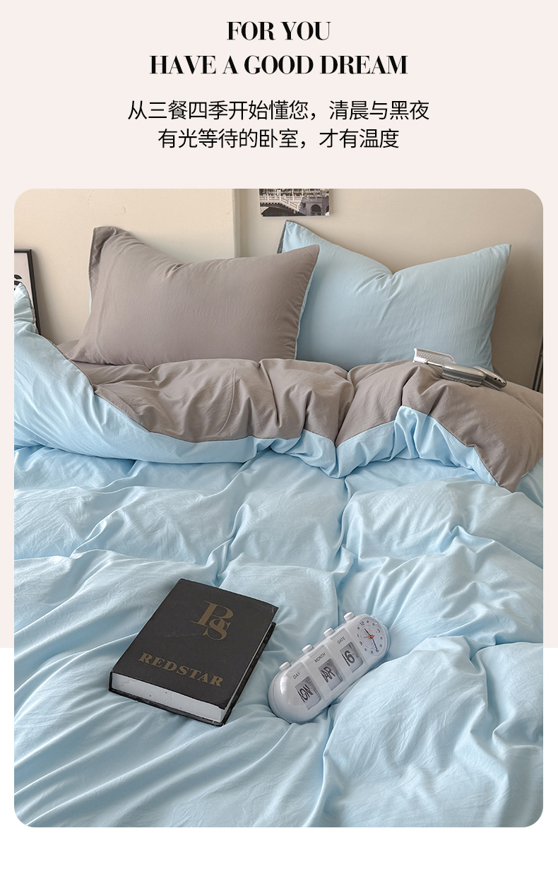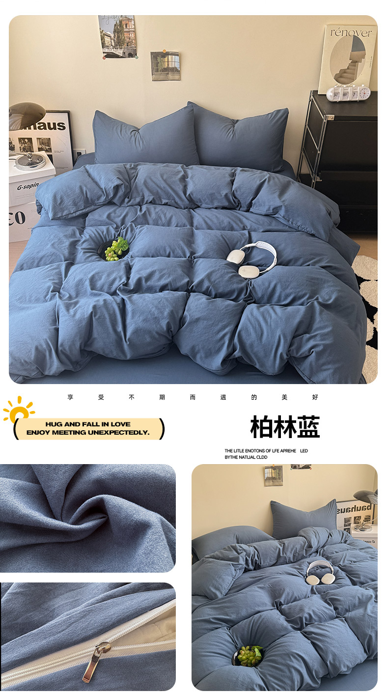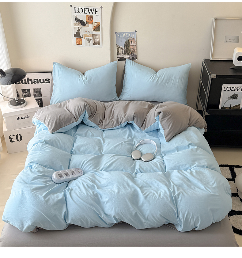 当前位置: 91家纺网 > 商品网购 > 床品套件 > 四件套 > 其它四件套 > 桔禾家纺 2025新款ins风纯色水洗棉四件套双拼水洗棉学生三件套四件套 天空蓝浅灰