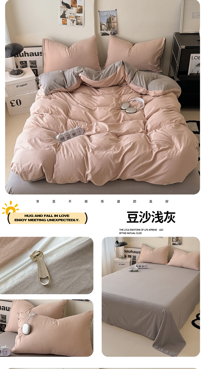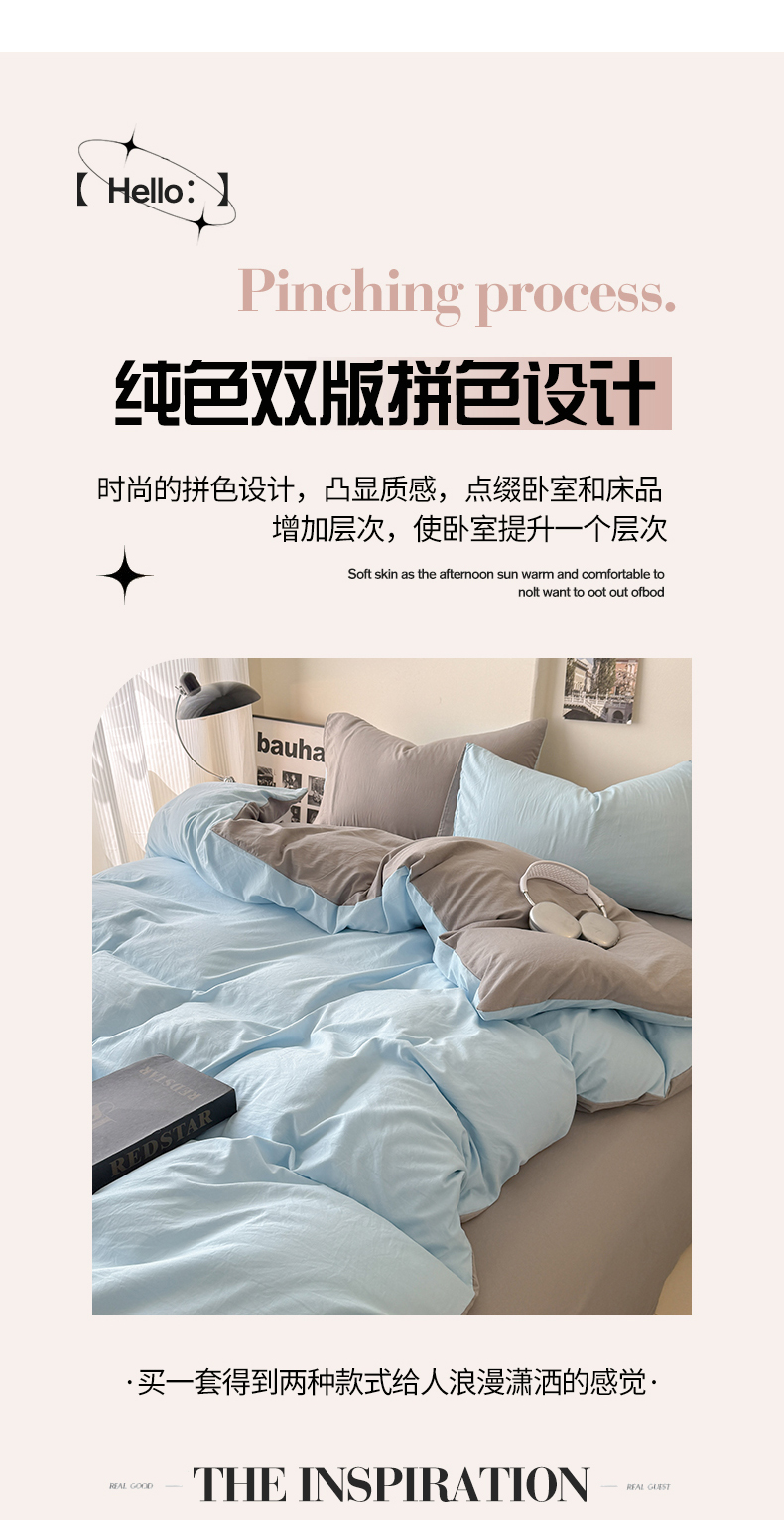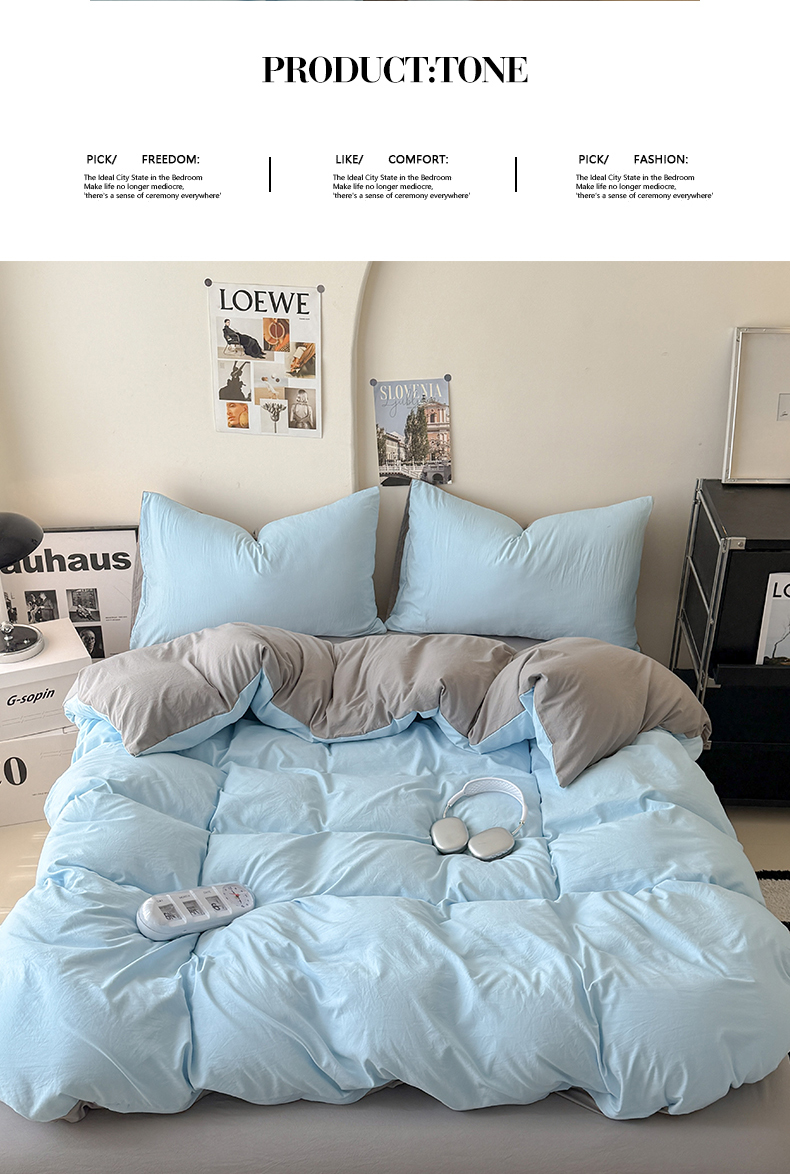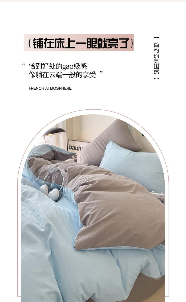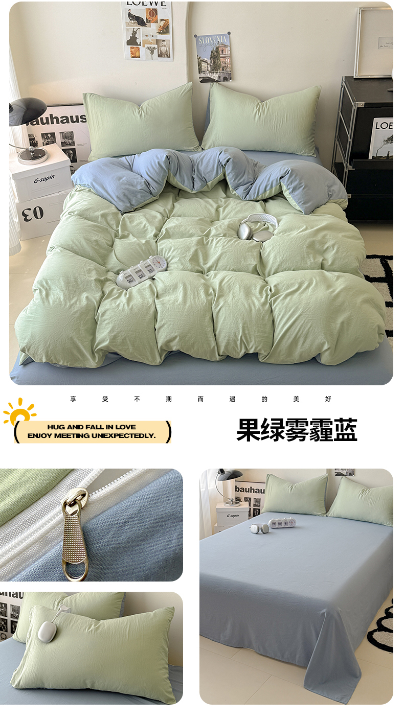 当前位置: 91家纺网 > 商品网购 > 床品套件 > 四件套 > 其它四件套 > 桔禾家纺 2025新款ins风纯色水洗棉四件套双拼水洗棉学生三件套四件套 天空蓝浅灰