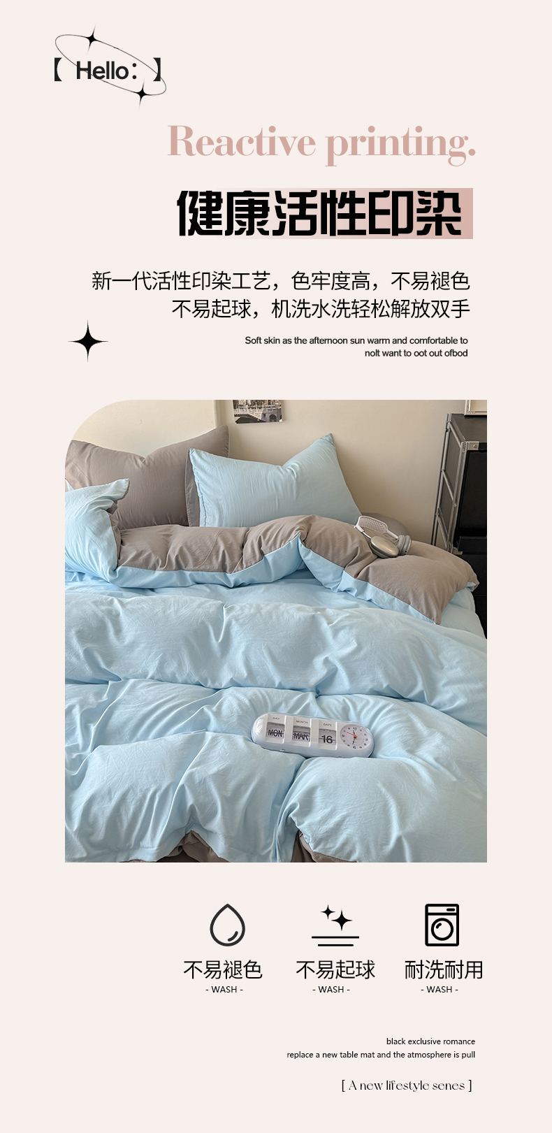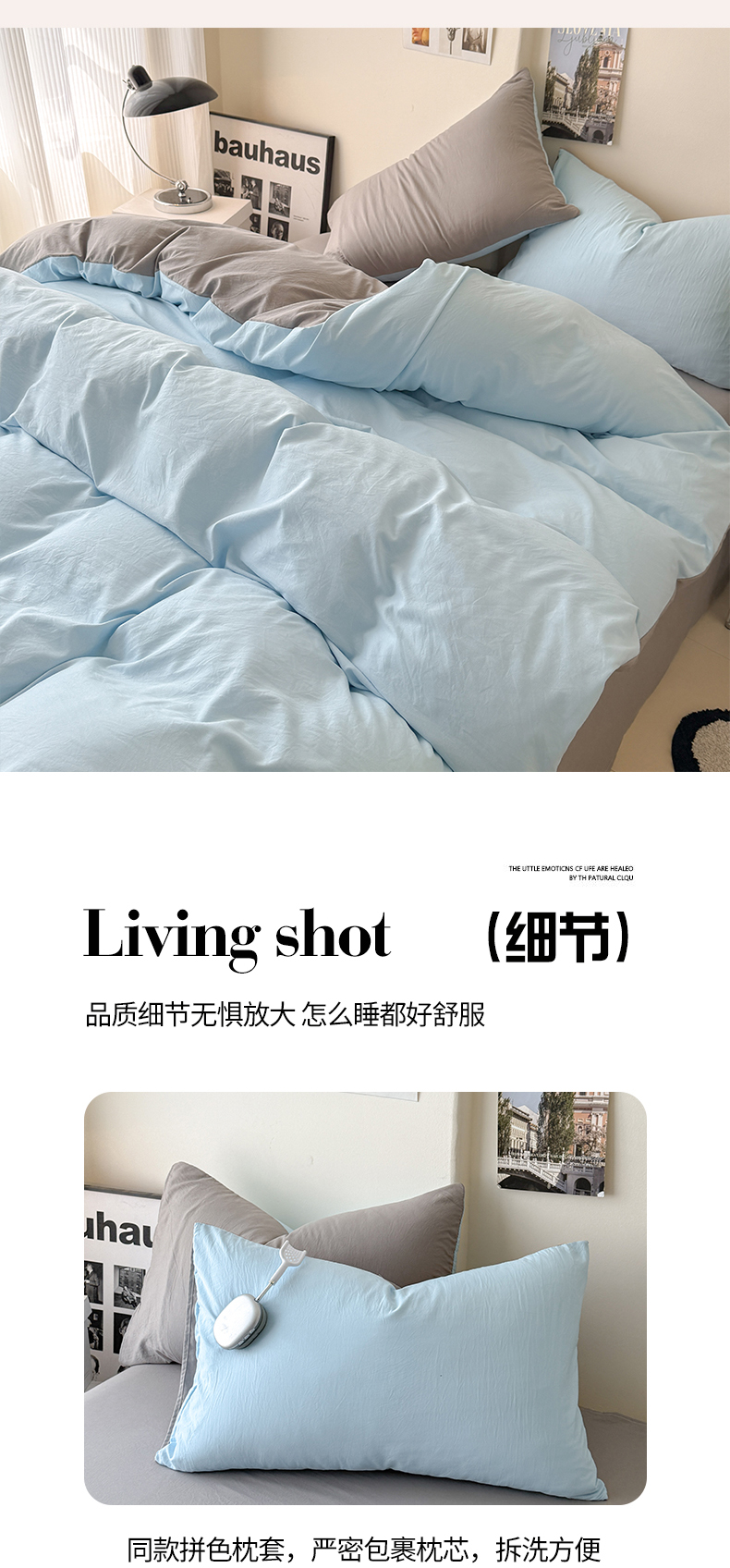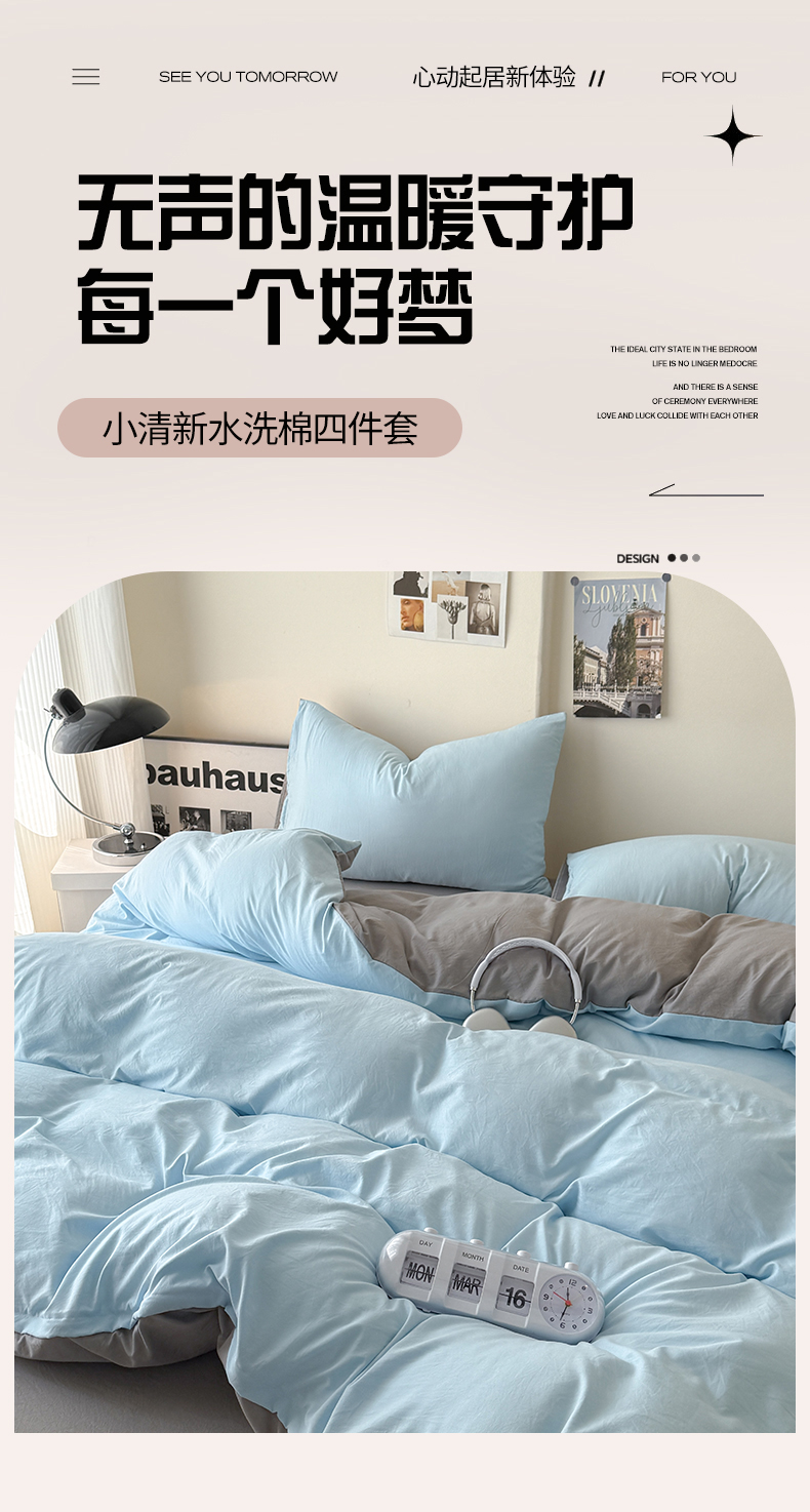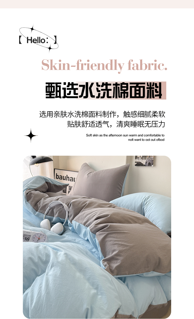 当前位置: 91家纺网 > 商品网购 > 床品套件 > 四件套 > 其它四件套 > 桔禾家纺 2025新款ins风纯色水洗棉四件套双拼水洗棉学生三件套四件套 天空蓝浅灰