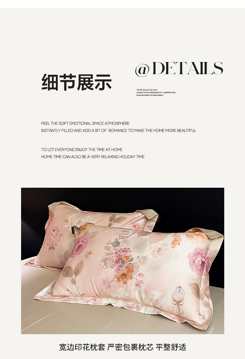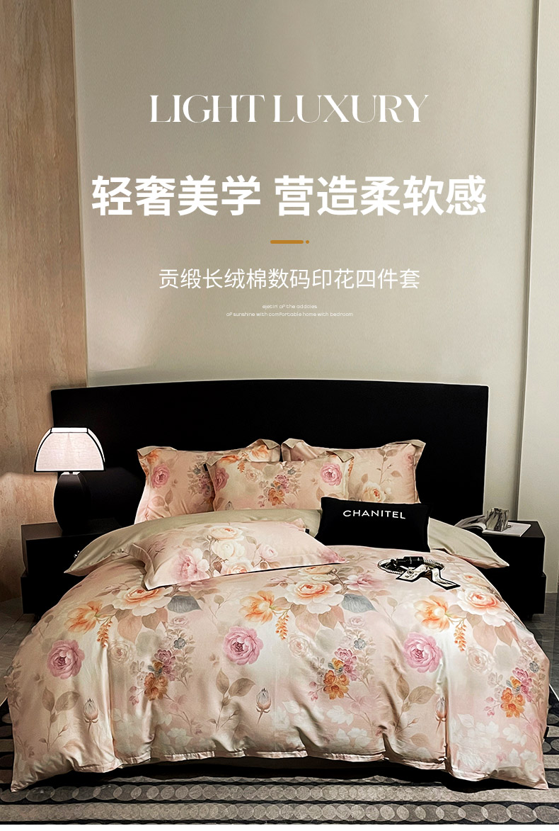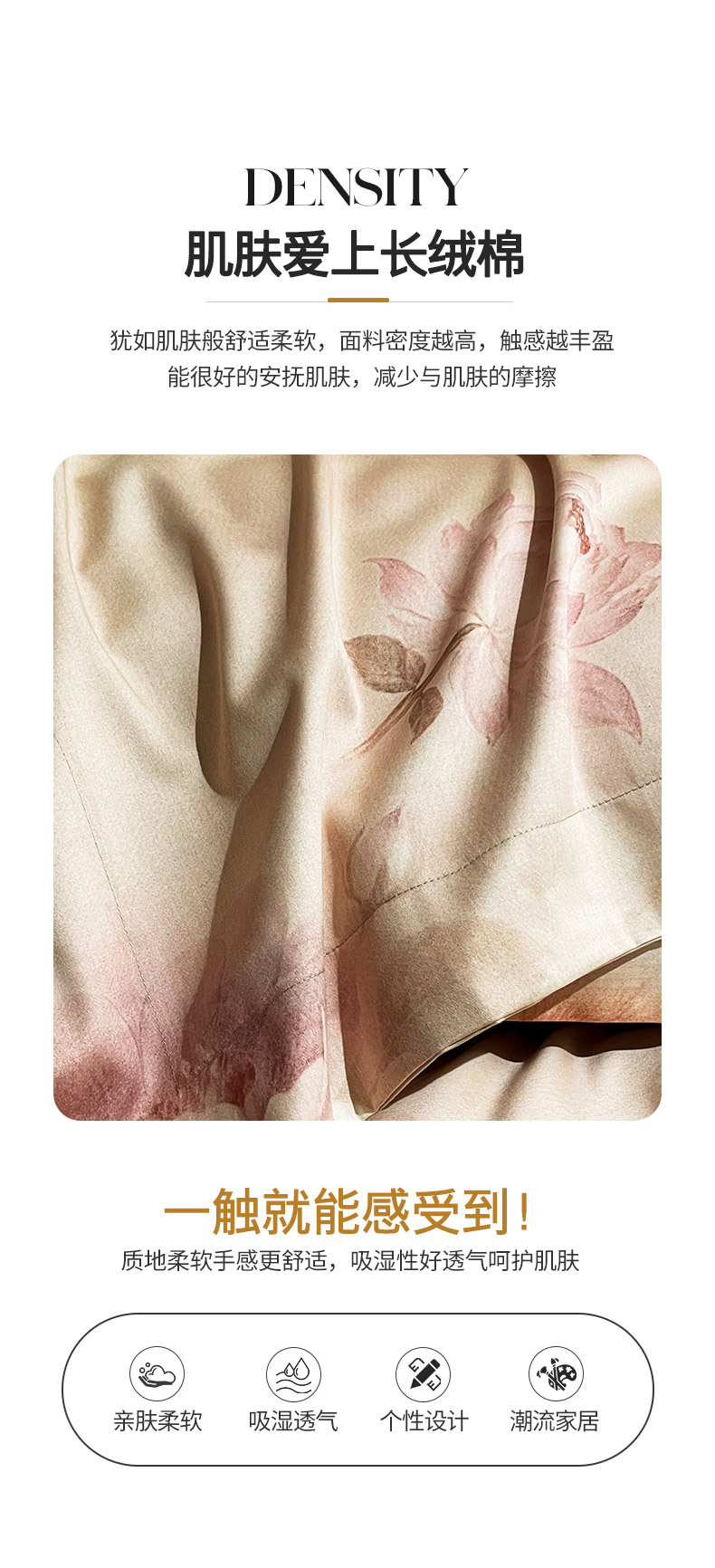 商品名称:大渔生活 2025新款贡缎长绒棉高品数码印花四件套 雾粉花槿