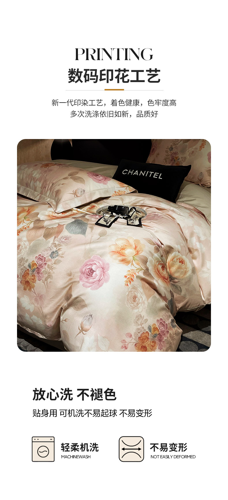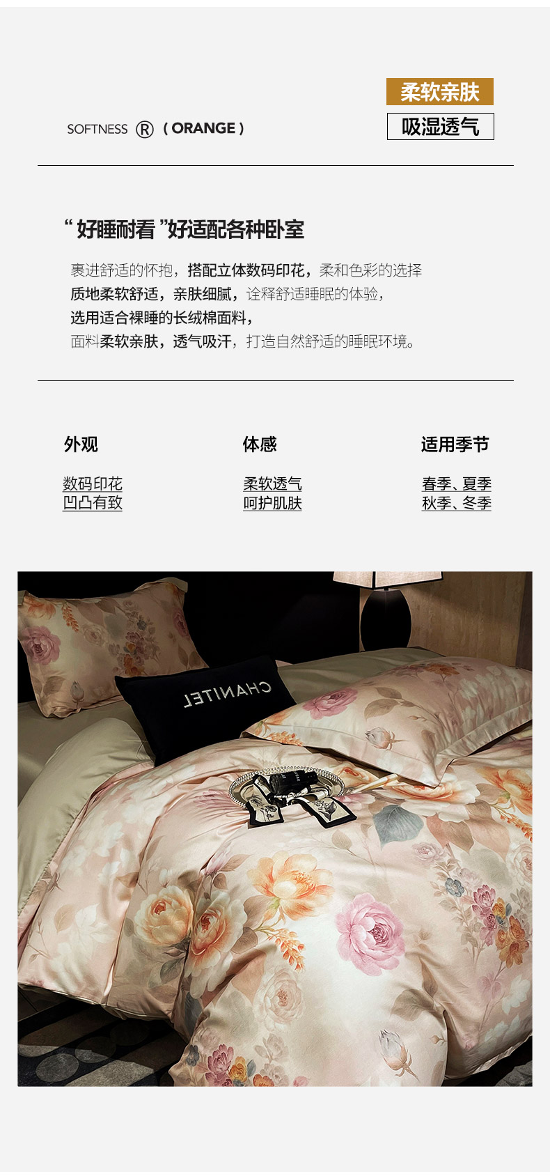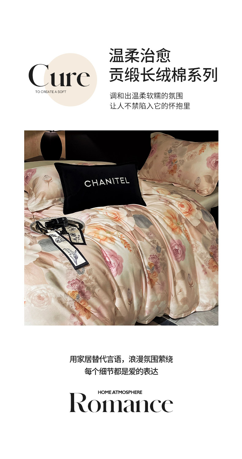 商品名称:大渔生活 2025新款贡缎长绒棉高品数码印花四件套 雾粉花槿