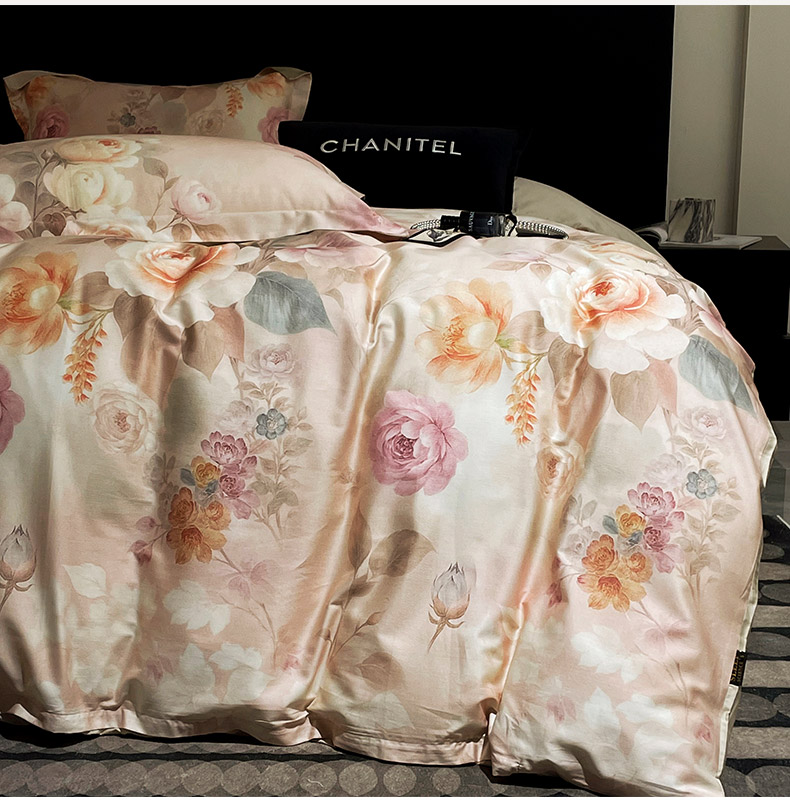 大渔生活 2025新款贡缎长绒棉高品数码印花四件套 雾粉花槿