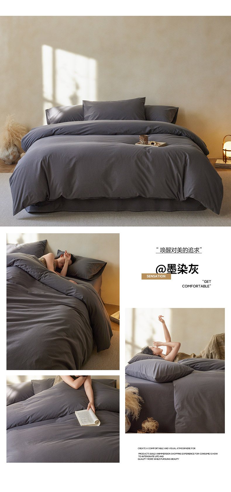 (总)轩和家居 2025新款全棉高支旧感砂洗长绒棉四件套,薄樱粉,淡黄色,暮烟灰,墨染灰,落栗棕,霁兰色,豆沙色,浅云白,青绿色,秋麦色,松石绿,天空蓝,雾海蓝,细雨灰