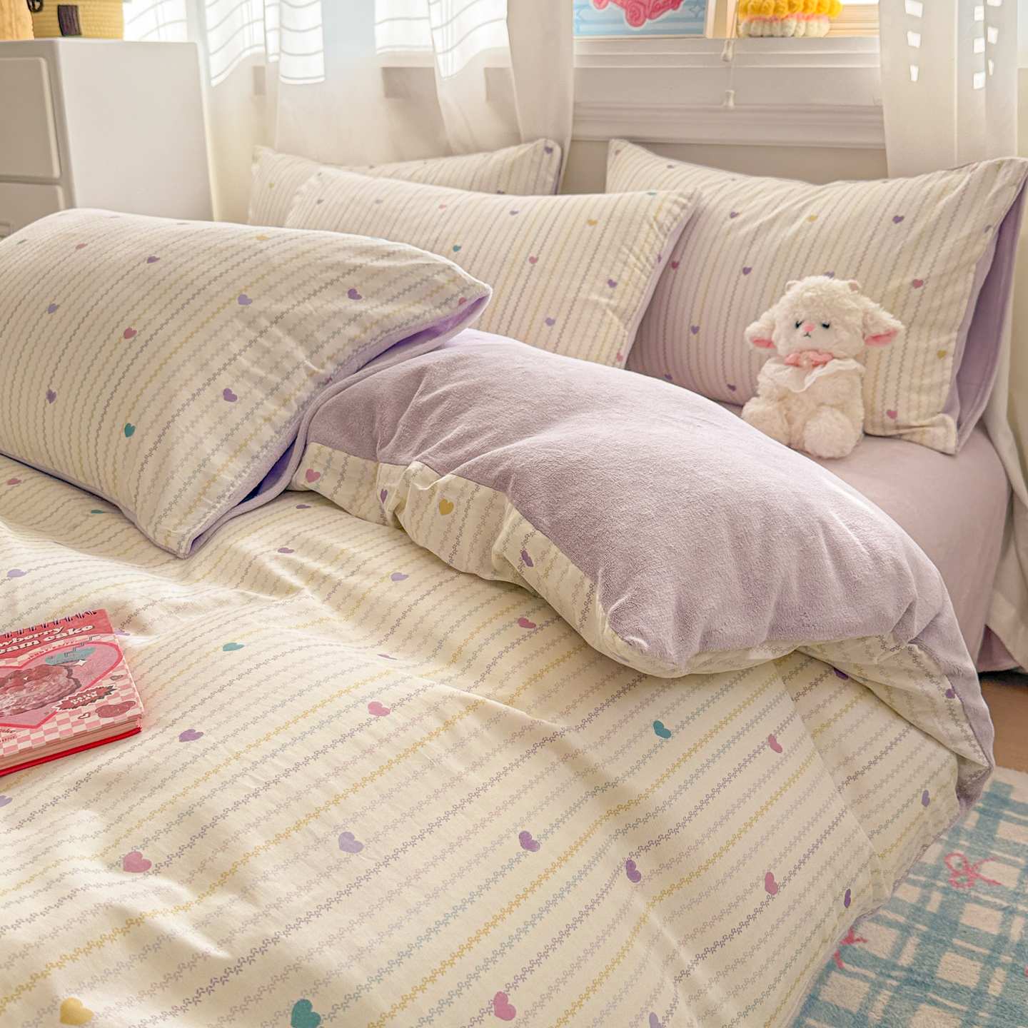 (总)呗旺鹿 2025新款A版全棉B版牛奶绒四件套,冰岛小马,萌星,糖果小马,小狗笔记,费尔岛小熊