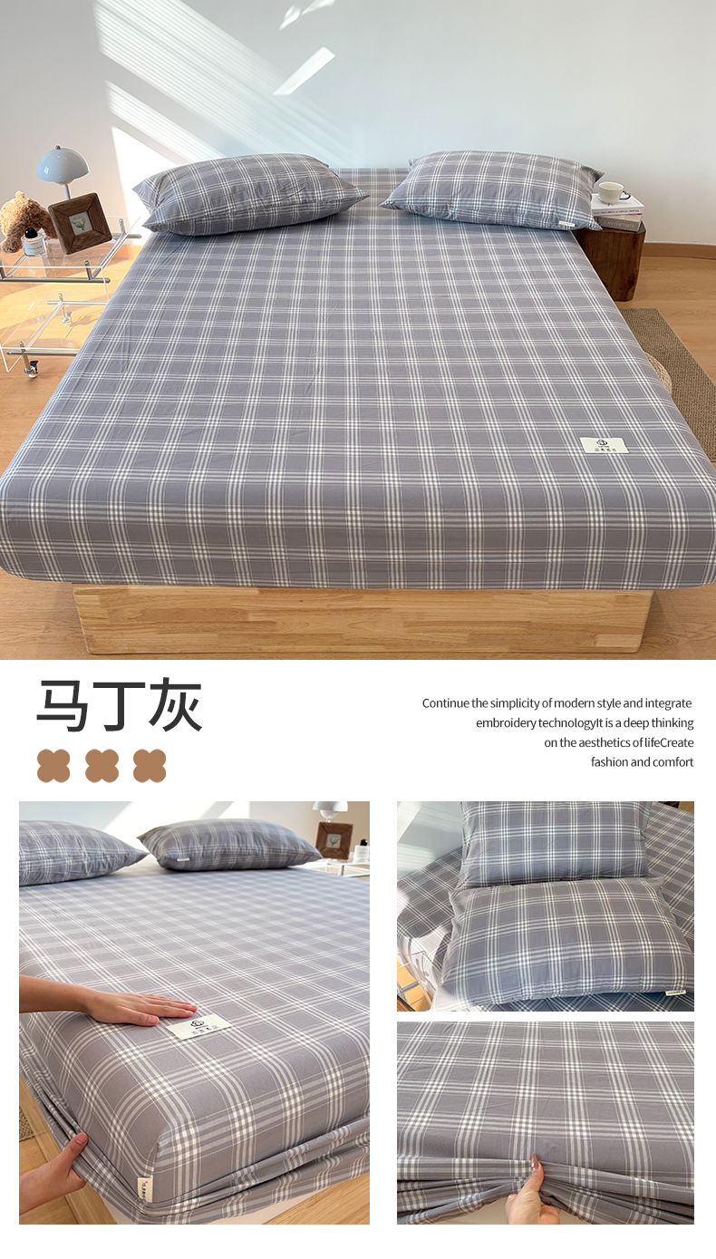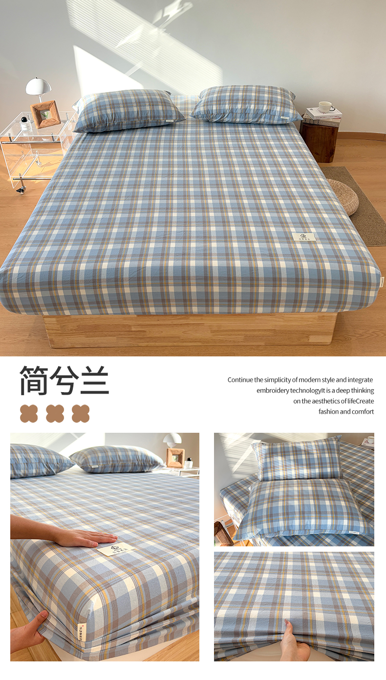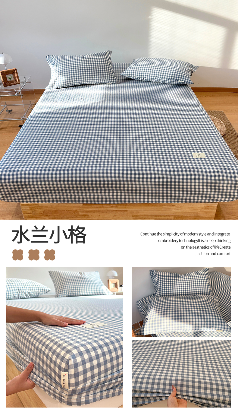 • 91家纺网 家纺一手货源 找家纺 (总)居眠 2026新款单层色织水洗格子全棉床笠,单层款-摩登蓝卡条,单层款-摩登绿卡条