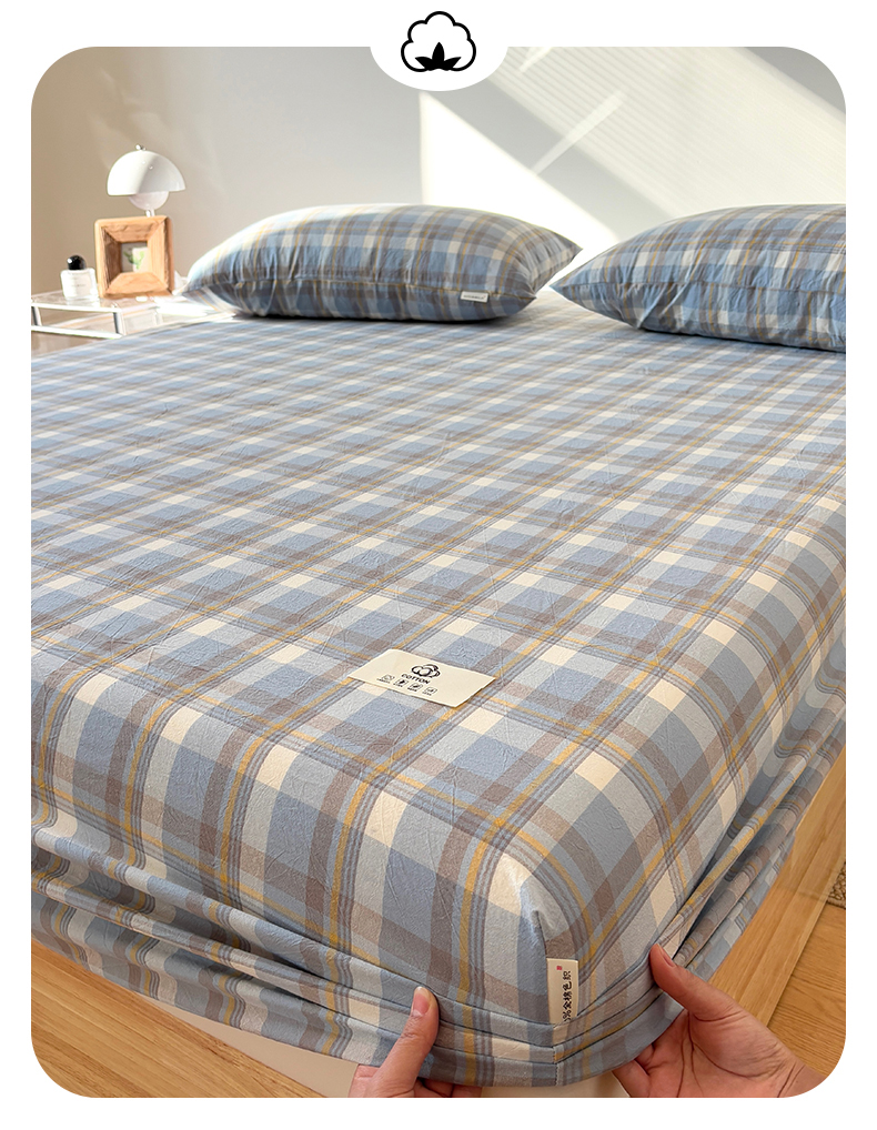 (总)居眠 2026新款单层色织水洗格子全棉床笠,单层款-摩登蓝卡条,单层款-摩登绿卡条